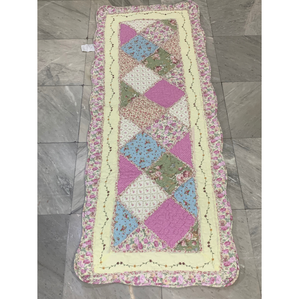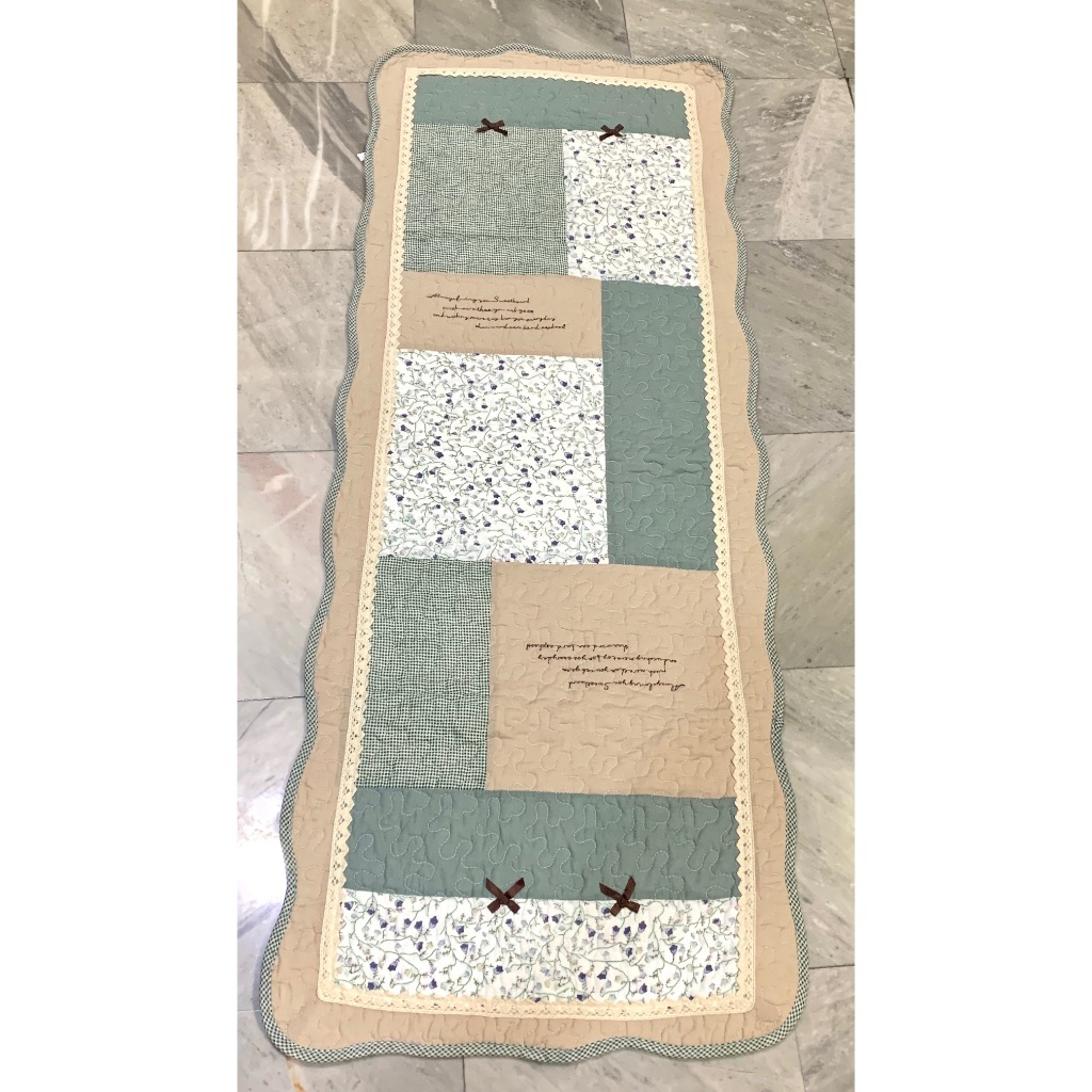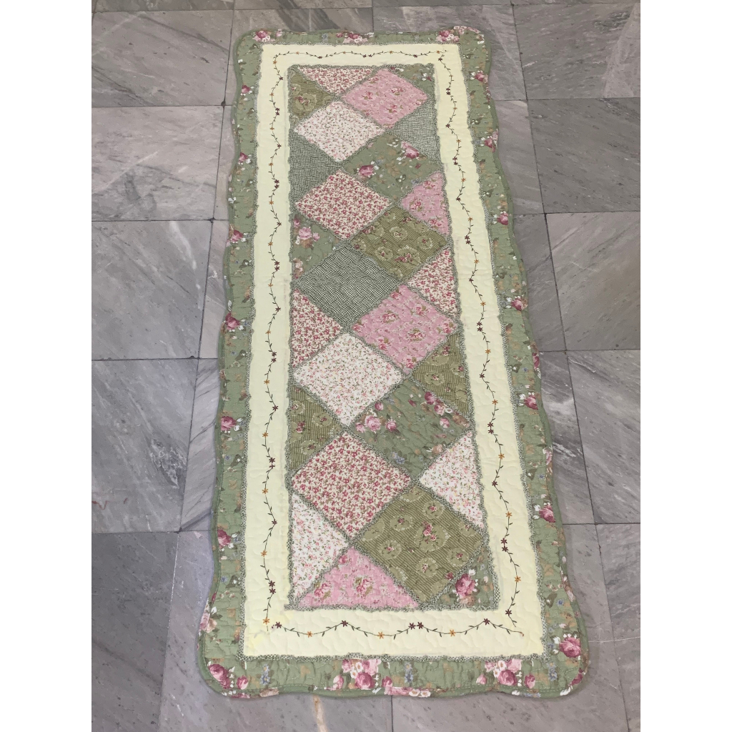 พรมเช็ดเท้า ผ้าต่อ งานฝีมือจากต่างประเทศ เนื้อผ้าฝ้าย เกรดพรีเมี่ยม ขนาดยาว ลายสไตล์วินเทจ ขนาด 50x130 ซม. มีกันลื่น ซักเครื่องได้ เน้นซักที่รอบความเร็วต่ำ เพื่อถนอมอายุการทำงานของพรม ให้ใช้งานได้นานมากขึ้น