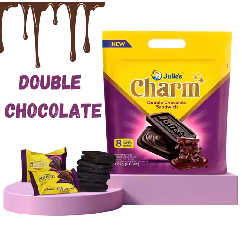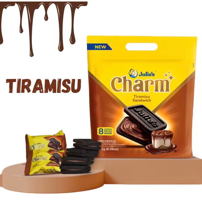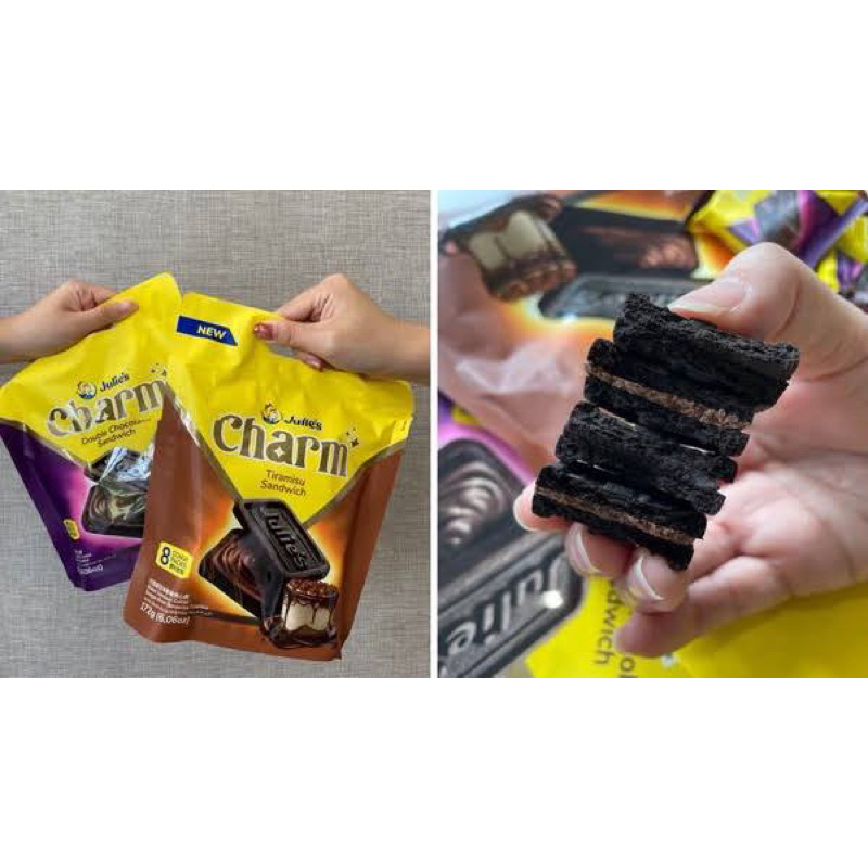 Julie’s Charm biscuit บิสกิตไส้ครีมทีรามิสุ/ ไส้ครีมดับเบิ้ลช็อกโกแลต ห่อใหญ่ 172กรัม