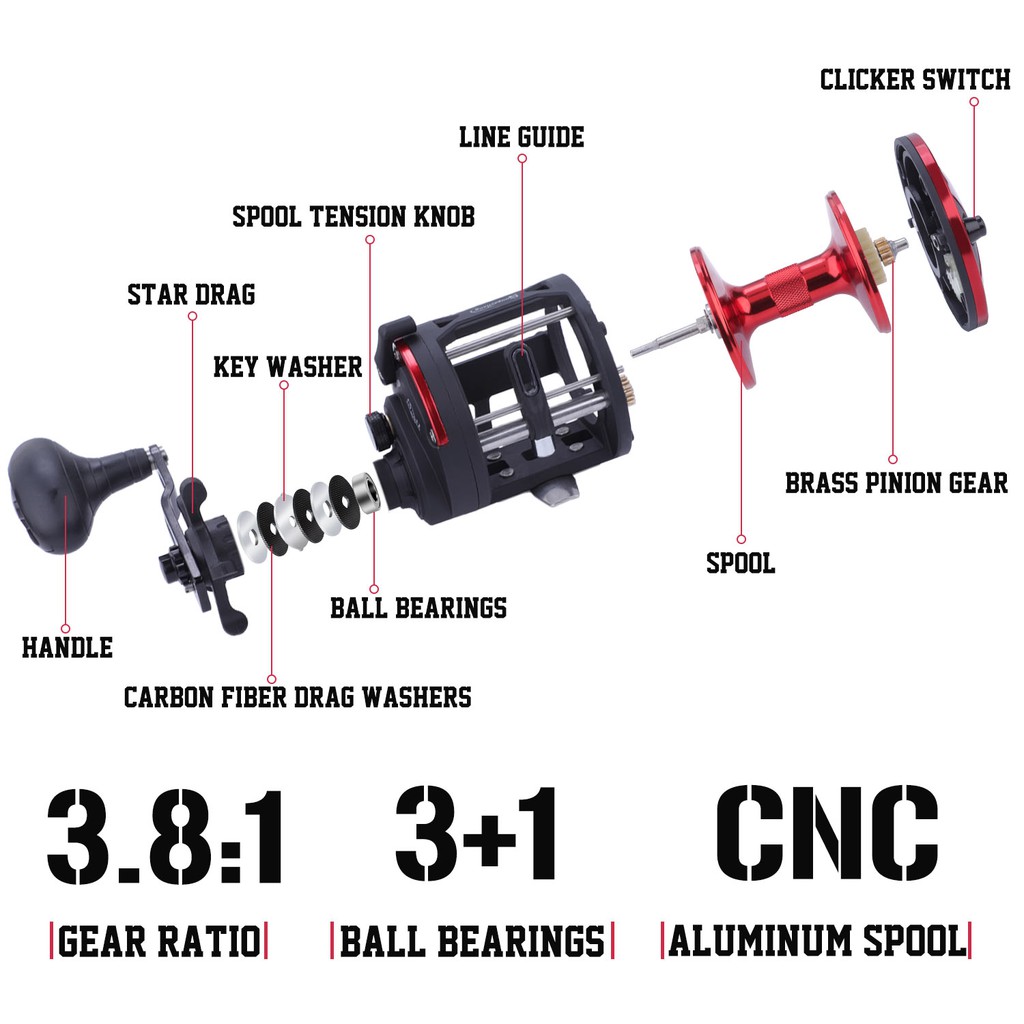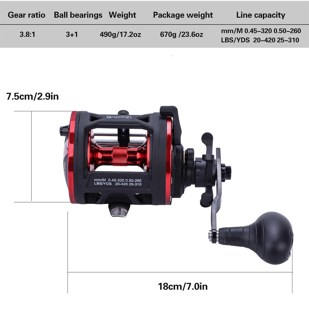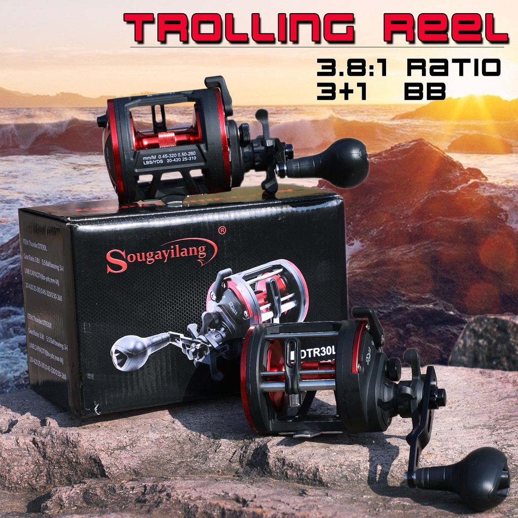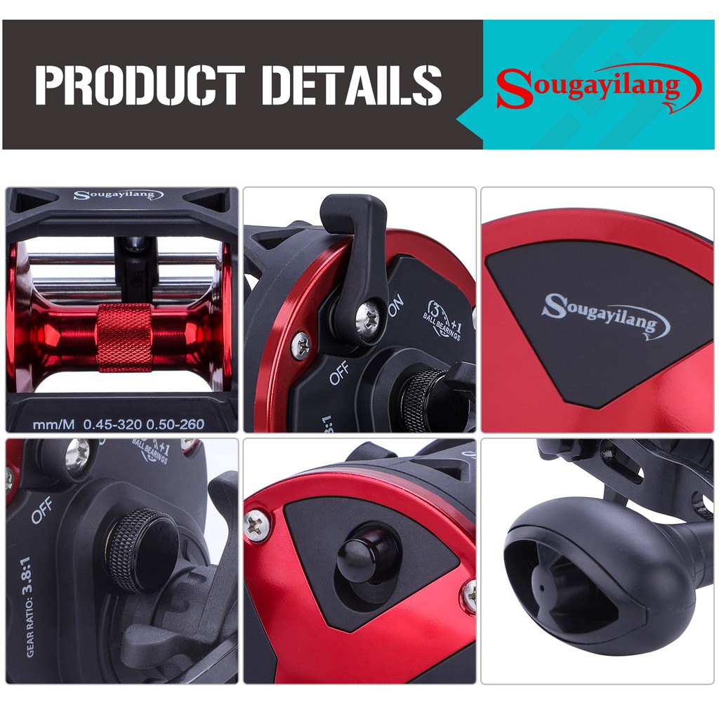 รอกตกปลากลอง Sougayilang 3 + 1BB 3.8: 1 มือซ้าย / ขวา CNC Spool Pancing Max Drag 25kg คุณสมบัติ: 1.หากไม่มีการออกแบบโครงสร้างช่องว่างพร้อมกับตลับลูกปืนป้องกันการกัดกร่อนที่ซับซ้อน 2.ล้ออลูมิเนียมอัลลอยด์ที่ทนต่อการกัดกร่อนปลอมล้ออลูมิเนียมอัลลอยด์ที่ทนต่