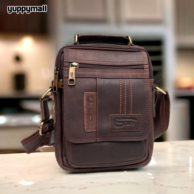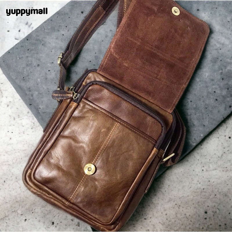 กระเป๋าสะพายข้างผู้ชาย หนังแท้ กระเป๋าหนังผู้ชาย ไซส์เล็ก ขนาด 9 นิ้ว