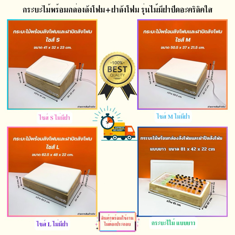 กระบะไม้พร้อมลังโฟมฝาปิดลังโฟมรุ่นไม่มีฝาปิดอะคริลิคและรุ่นมีฝาปิดอะคริลิค มีให้เลือก 4ไซส์ S,M,L และแบบยาว(พร้อมใช้งาน)