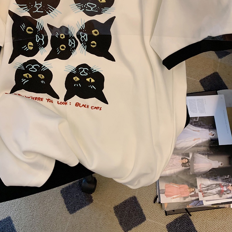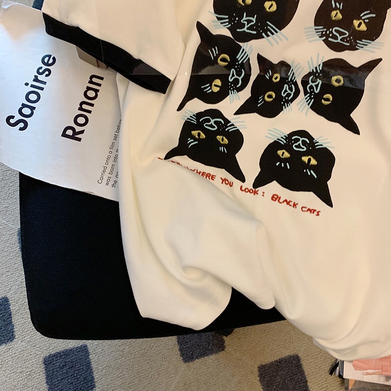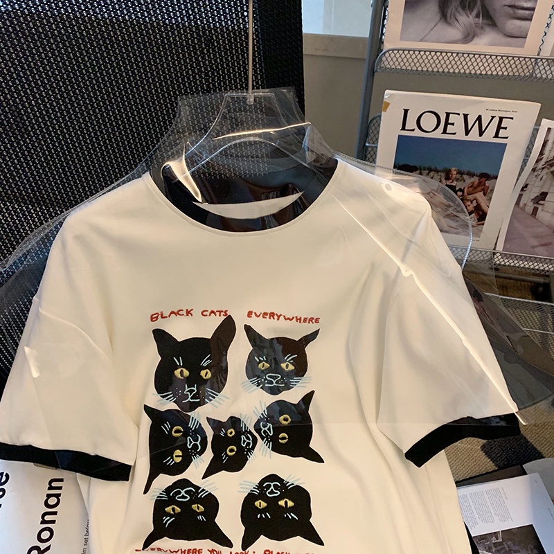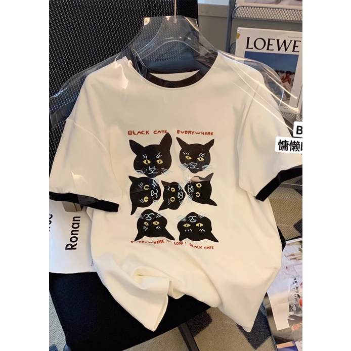 เสื้อยืดคอกลม แขนสั้น ผ้าฝ้าย 100% พิมพ์ลาย ทรงหลวม สไตล์บูติก เหมาะกับฤดูร้อน สําหรับผู้หญิง 200 กรัม