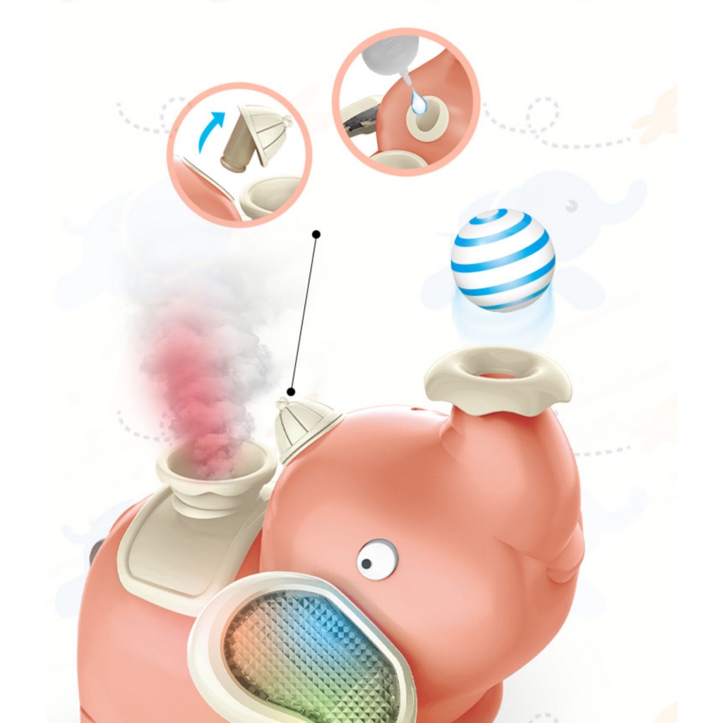 ของเล่น ช้างเป่าลม ลูกบอลลอยได้ มีเสียงเพลงและพ่นควันได้ พร้อมถ่านชาร์จ AA 3ก้อน