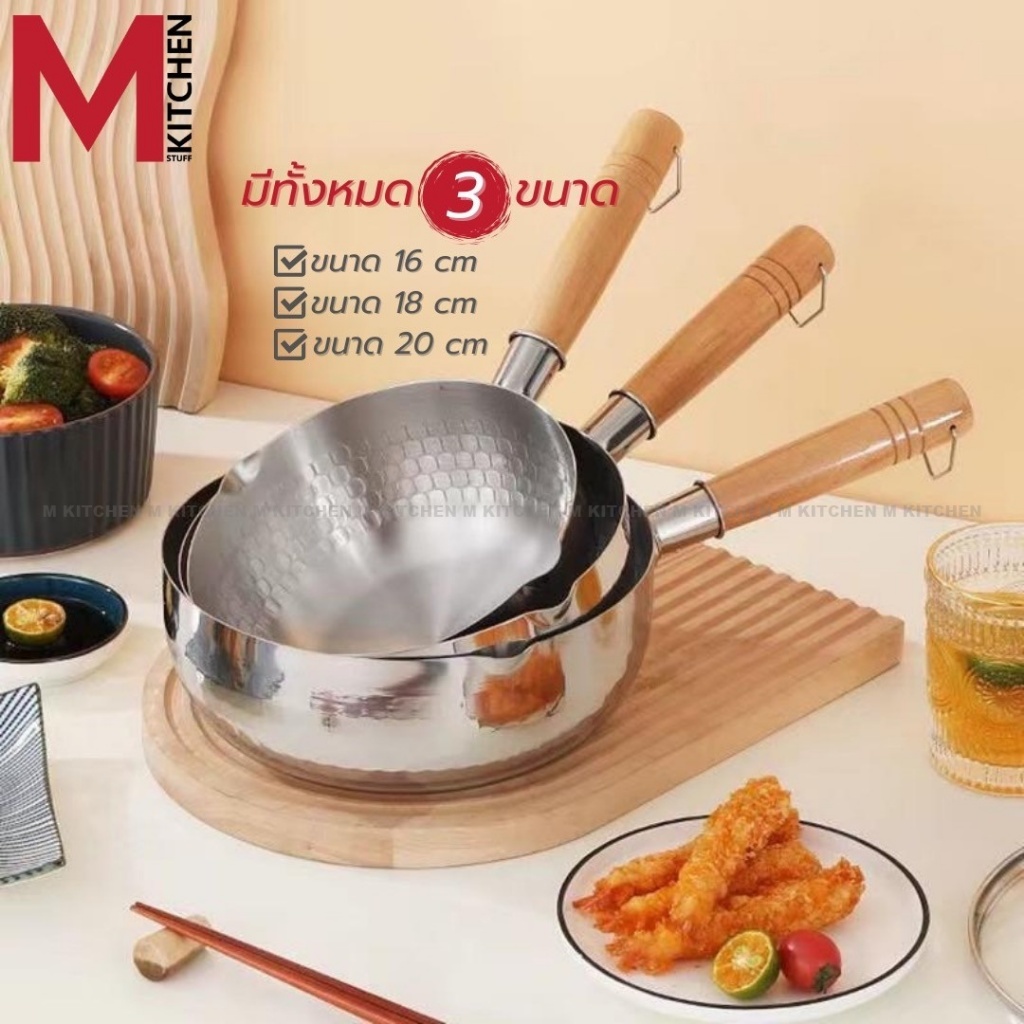 M KITCHEN หม้อ หม้อสแตนเลส หม้อด้าม หม้อต้ม หม้อมาม่า กะทะ กระทะ ไม่ติดก้นหม้อ (A4)