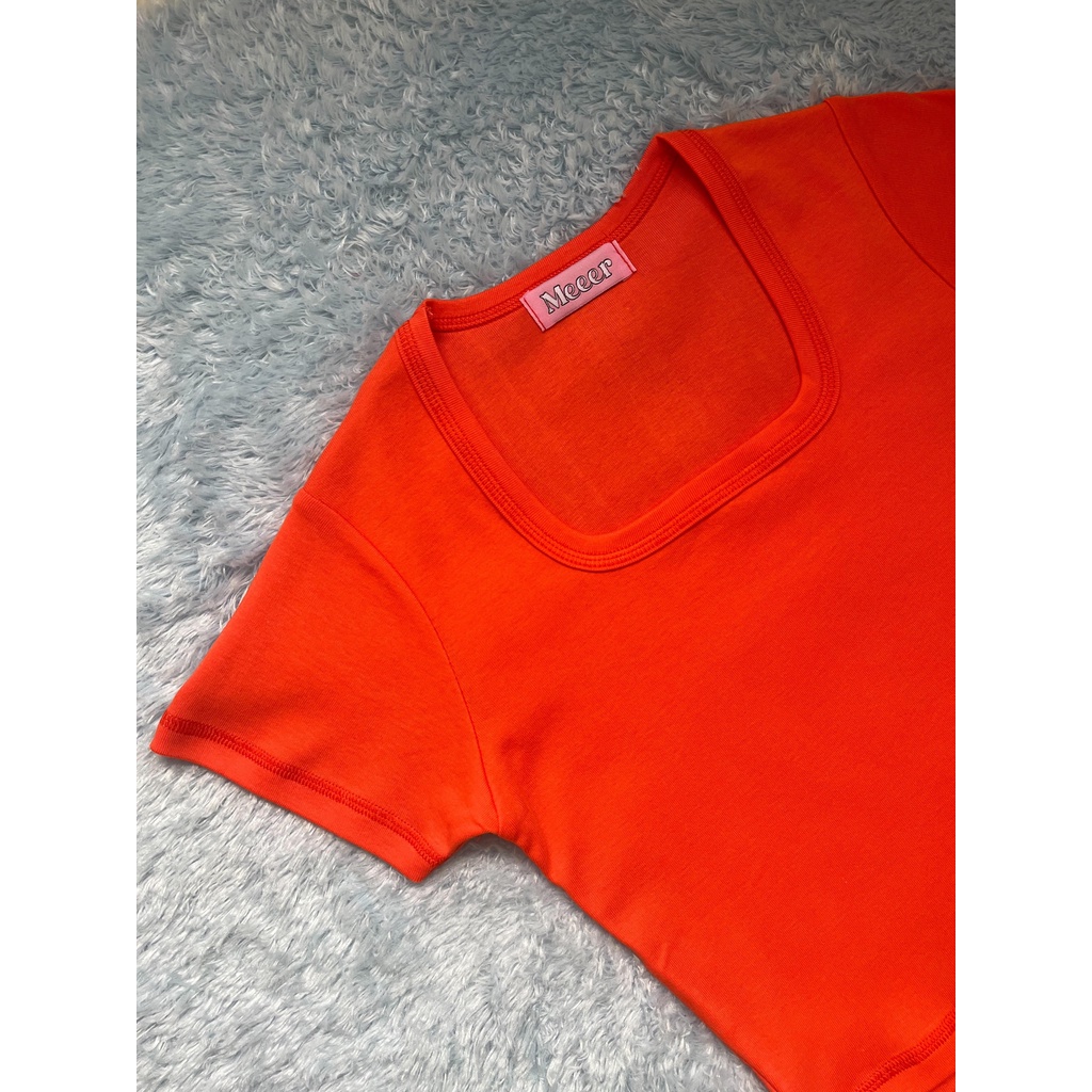 เสื้อยืดครอป”คอเหลี่ยม” SIZE 2 ใหญ่ขึ้นกว่าเดิม เสื้อครอปแขนสั้น ผ้าCOTTON สายฝอ! Meeer