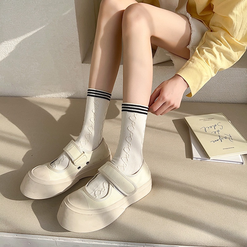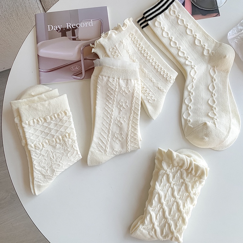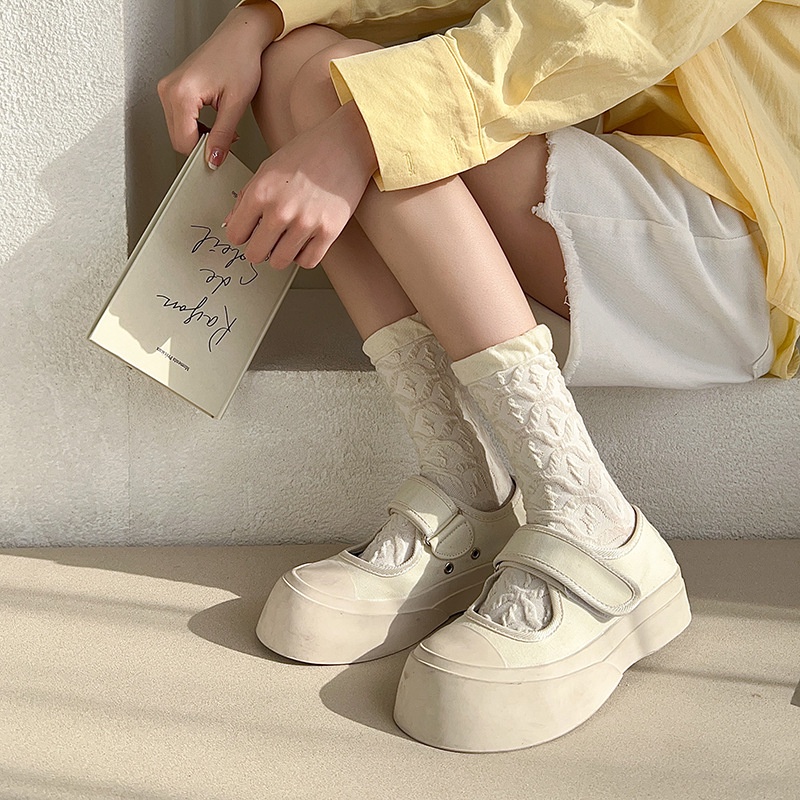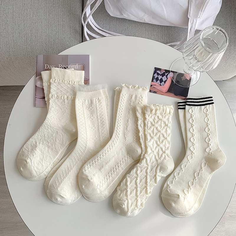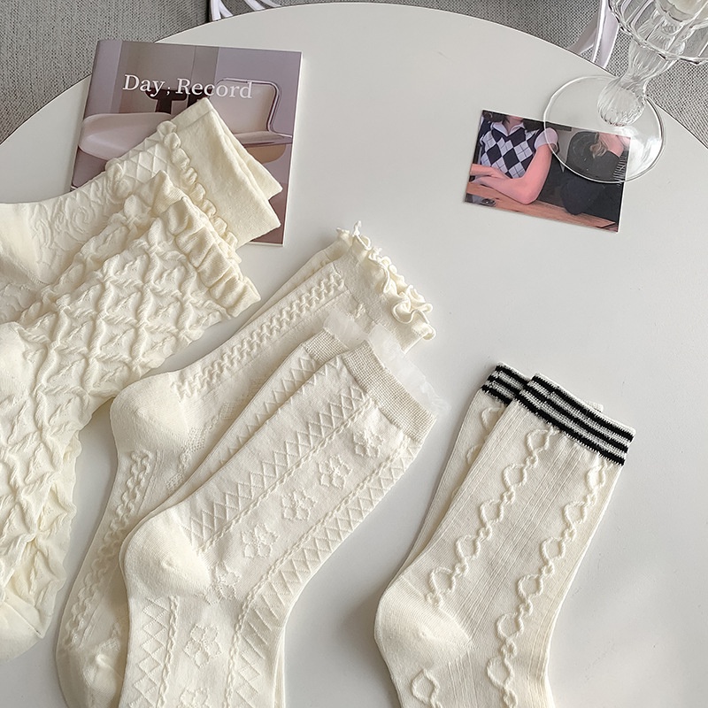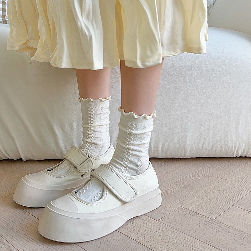 ถุงเท้าผู้หญิง JK สไตล์เกาหลี ถุงเท้านักเรียนลูกไม้ วัสดุผ้าฝ้ายแท้ สวมใส่สบาย