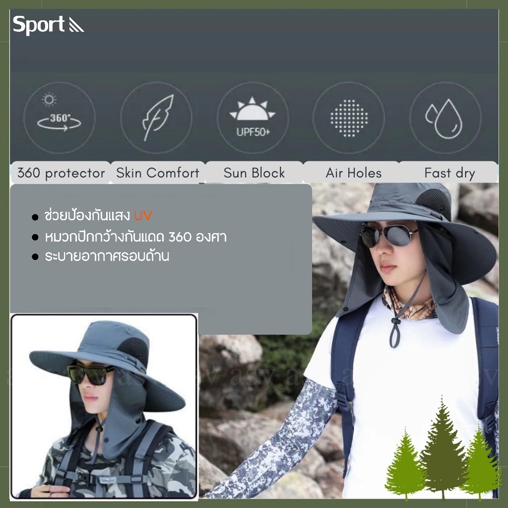 หมวก หมวกกันแดดปีกกว้าง UPF50+ บังแดดได้ 360องศา ไม่อับชิ้น ระบายอากาศได้รอบด้าน