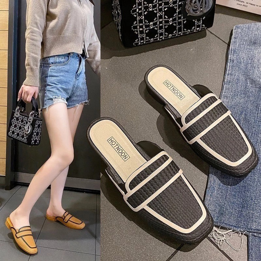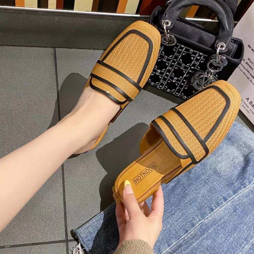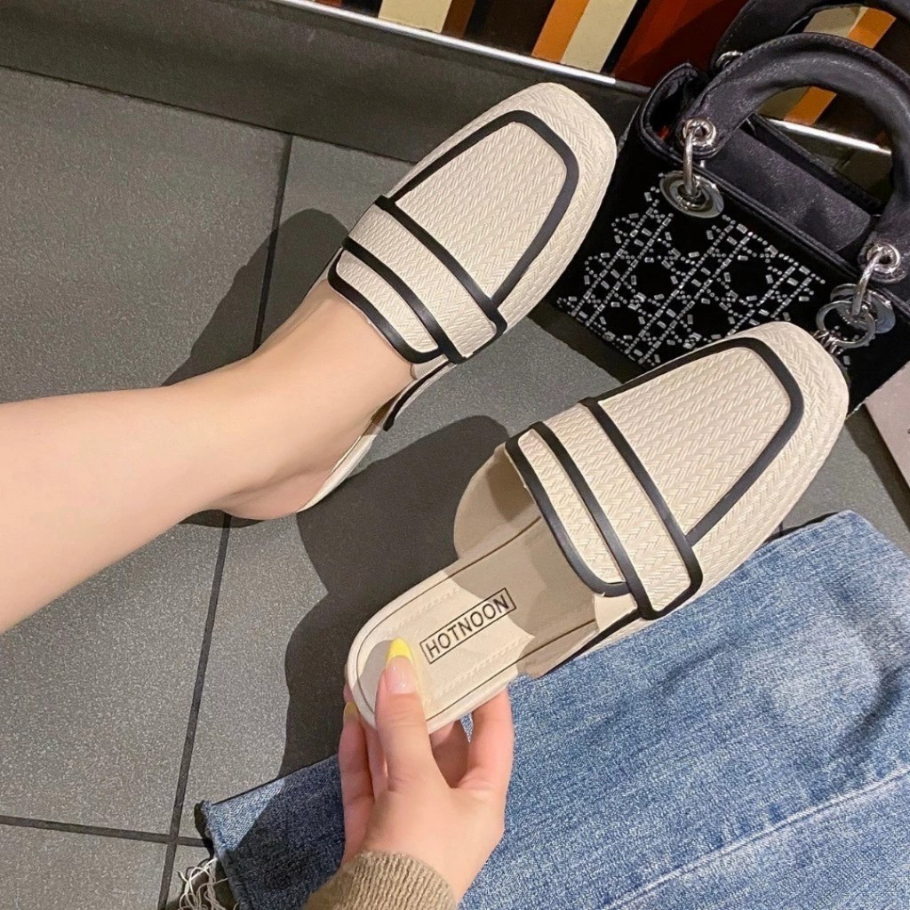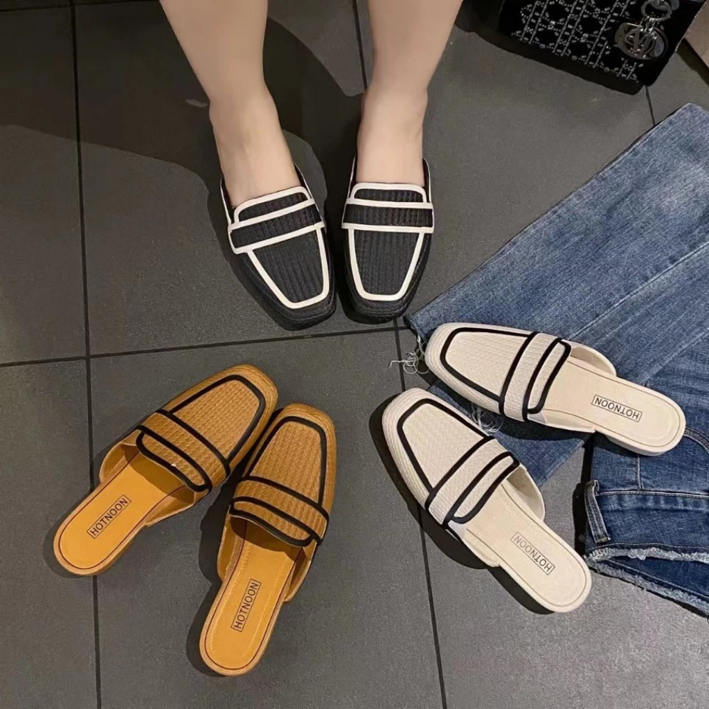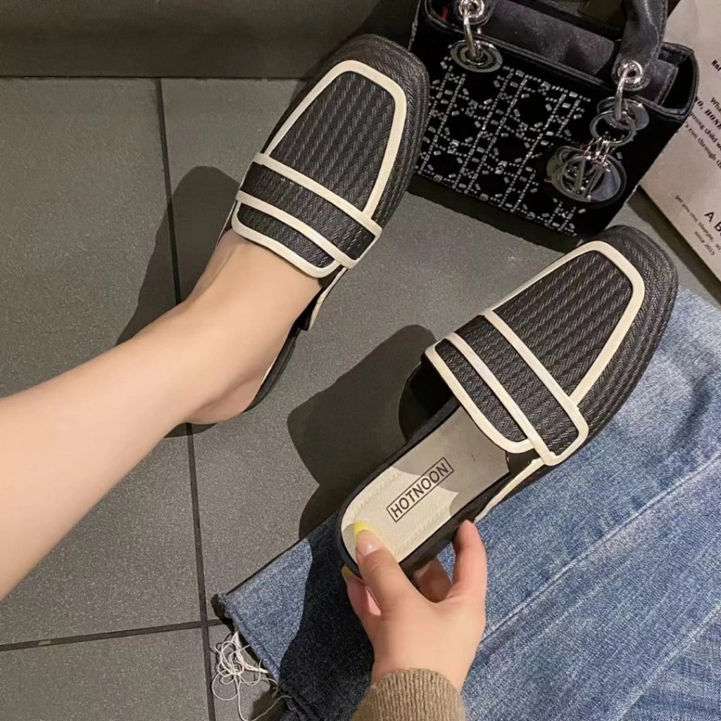 รองเท้าคัชชู ทนงาน สวยเรียบ สีเข้มสุภาพ ปลายตัดมน เปิดส้น ไม่ตกส้น ส้นเตี้ย เบานุ่ม เดินในออฟฟิตสบาย