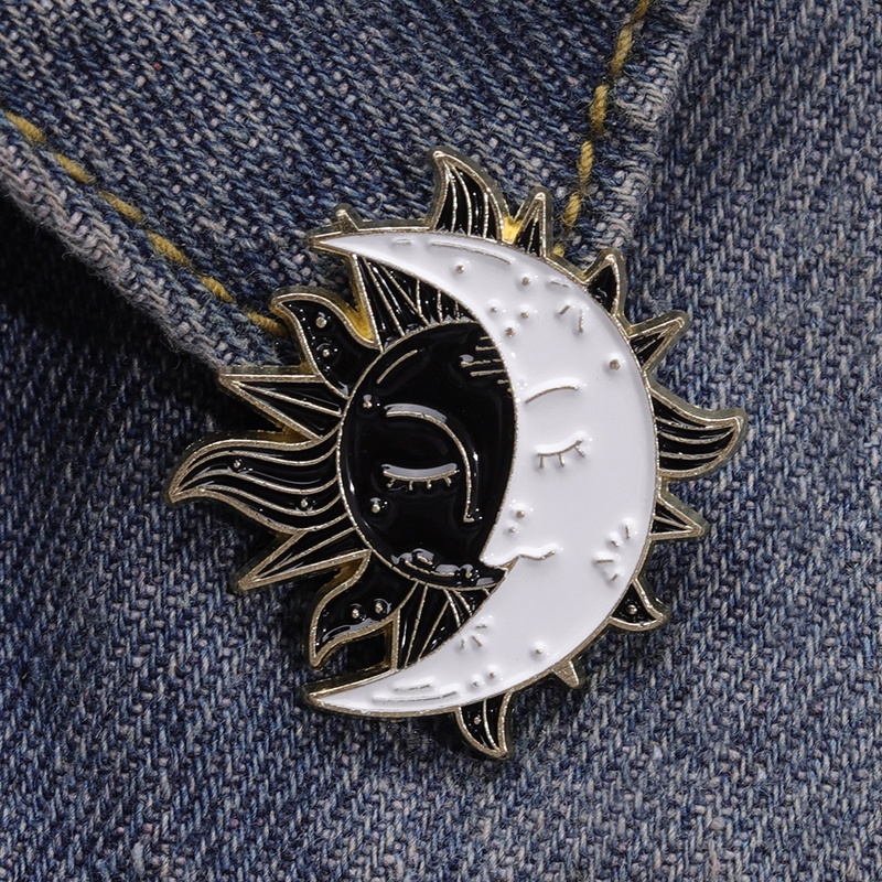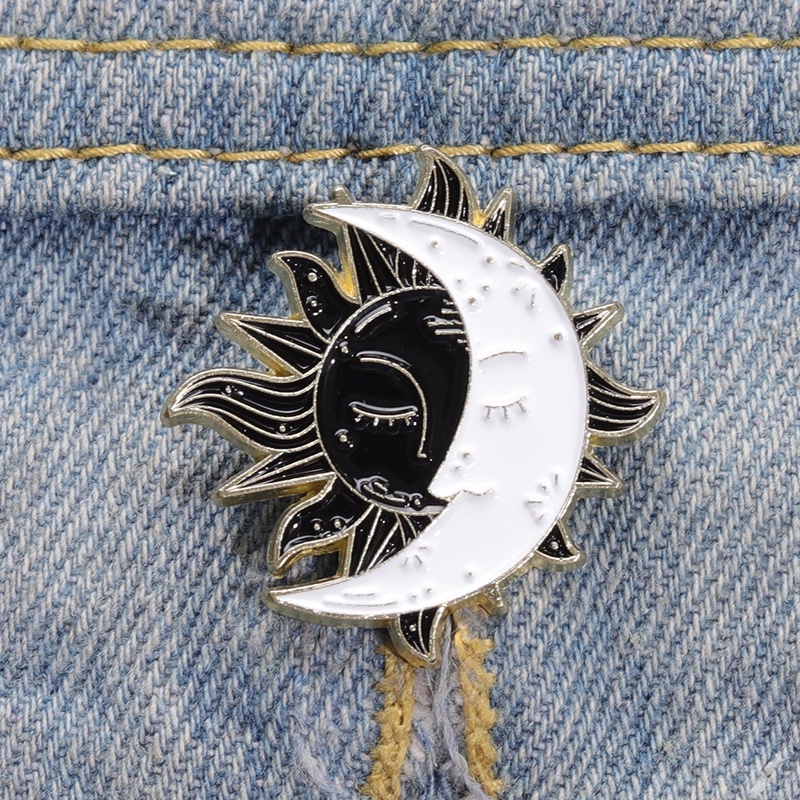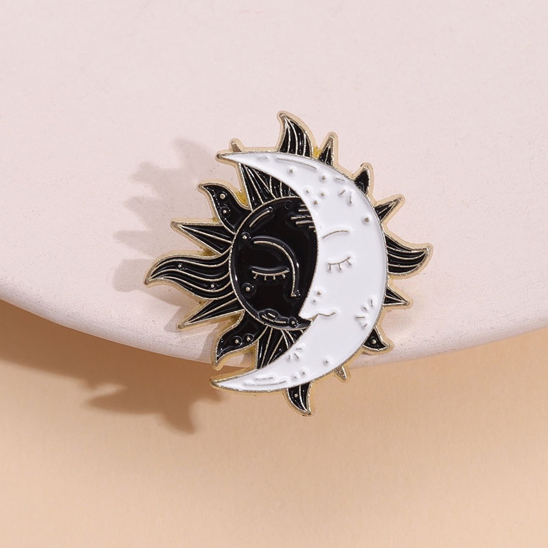 เครื่องประดับ เข็มกลัด รูปดวงอาทิตย์ และดวงจันทร์ สีดํา สไตล์โกธิค สําหรับเพื่อน