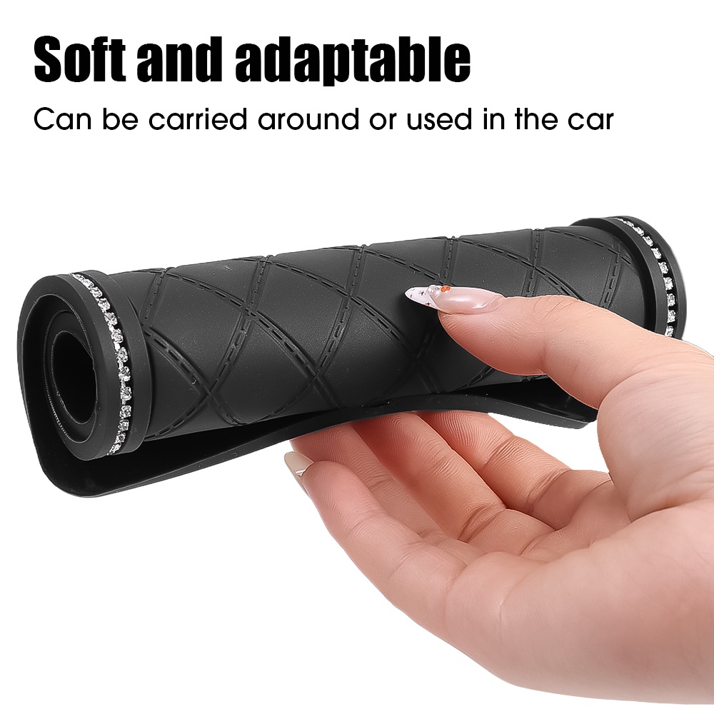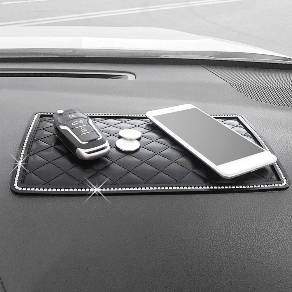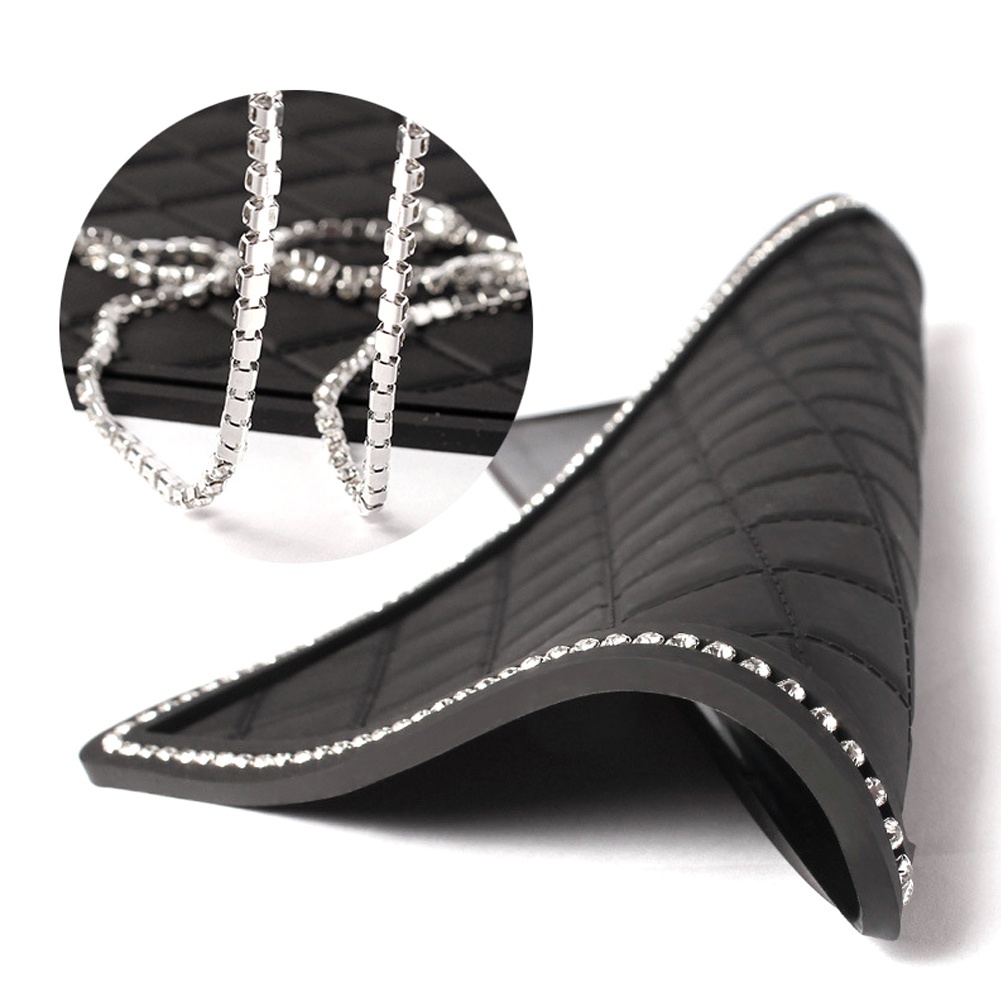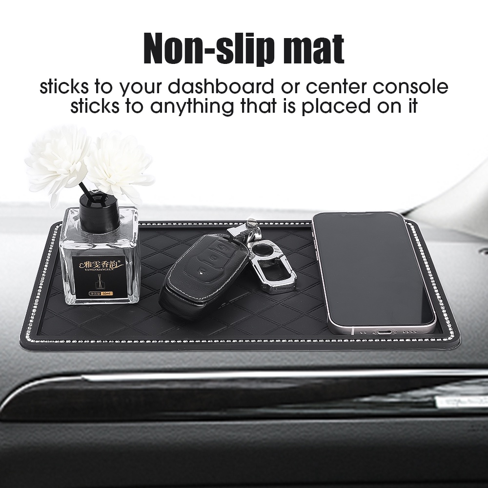 แผ่นแดชบอร์ด PVC กันลื่น ประดับพลอยเทียม อเนกประสงค์ ทนทาน สําหรับวางโทรศัพท์มือถือ น้ําหอม แว่นกันแดด