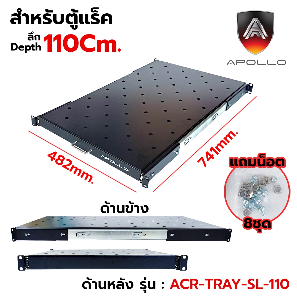 Apollo ถาดตู้แร็ค ถาดรองอุปกรณ์ตู้RACK Sever Shelf แบบสไลด์ สำหรับRack 19นิ้ว ลึก 60/80/110 ซม. SLIDING RACK SHELF
