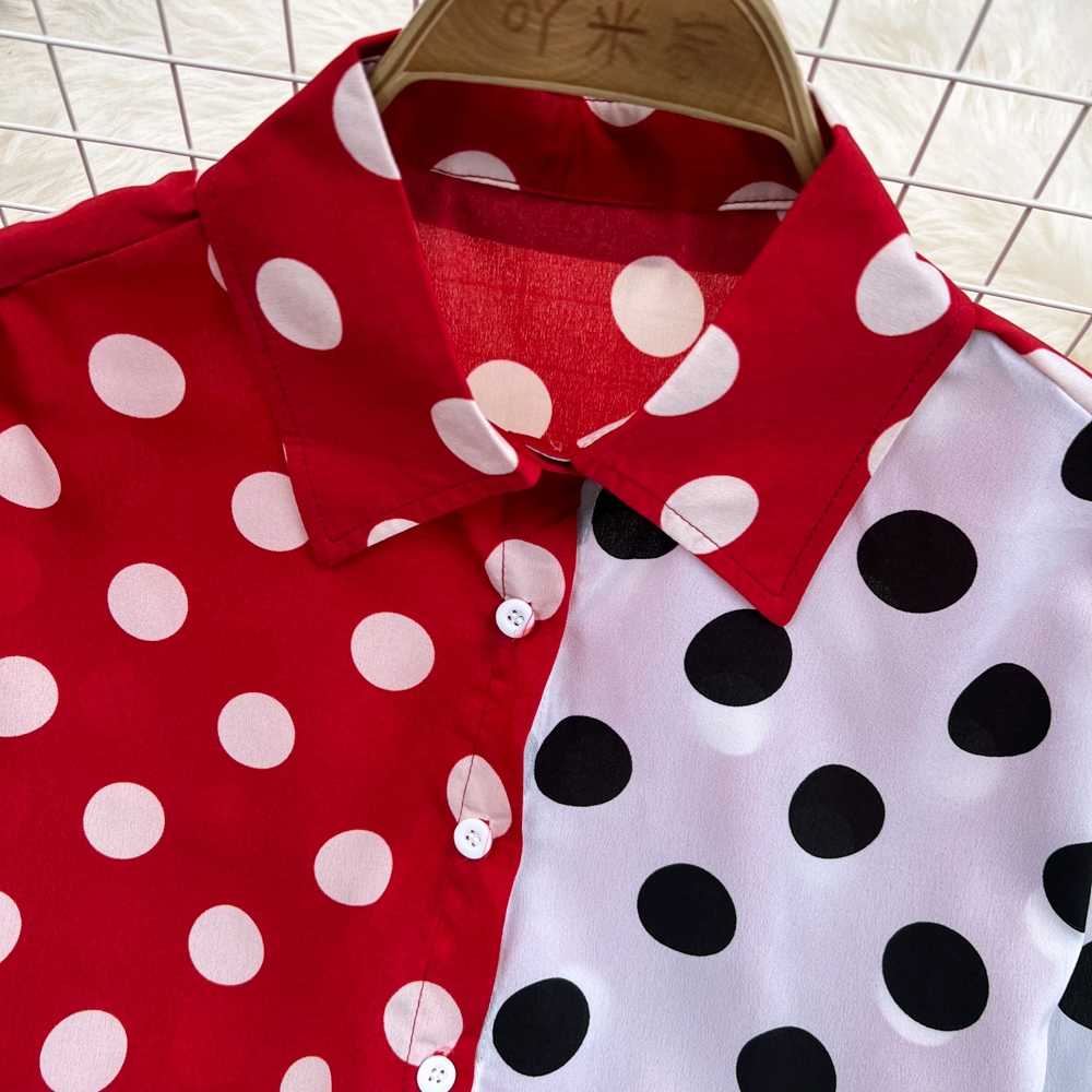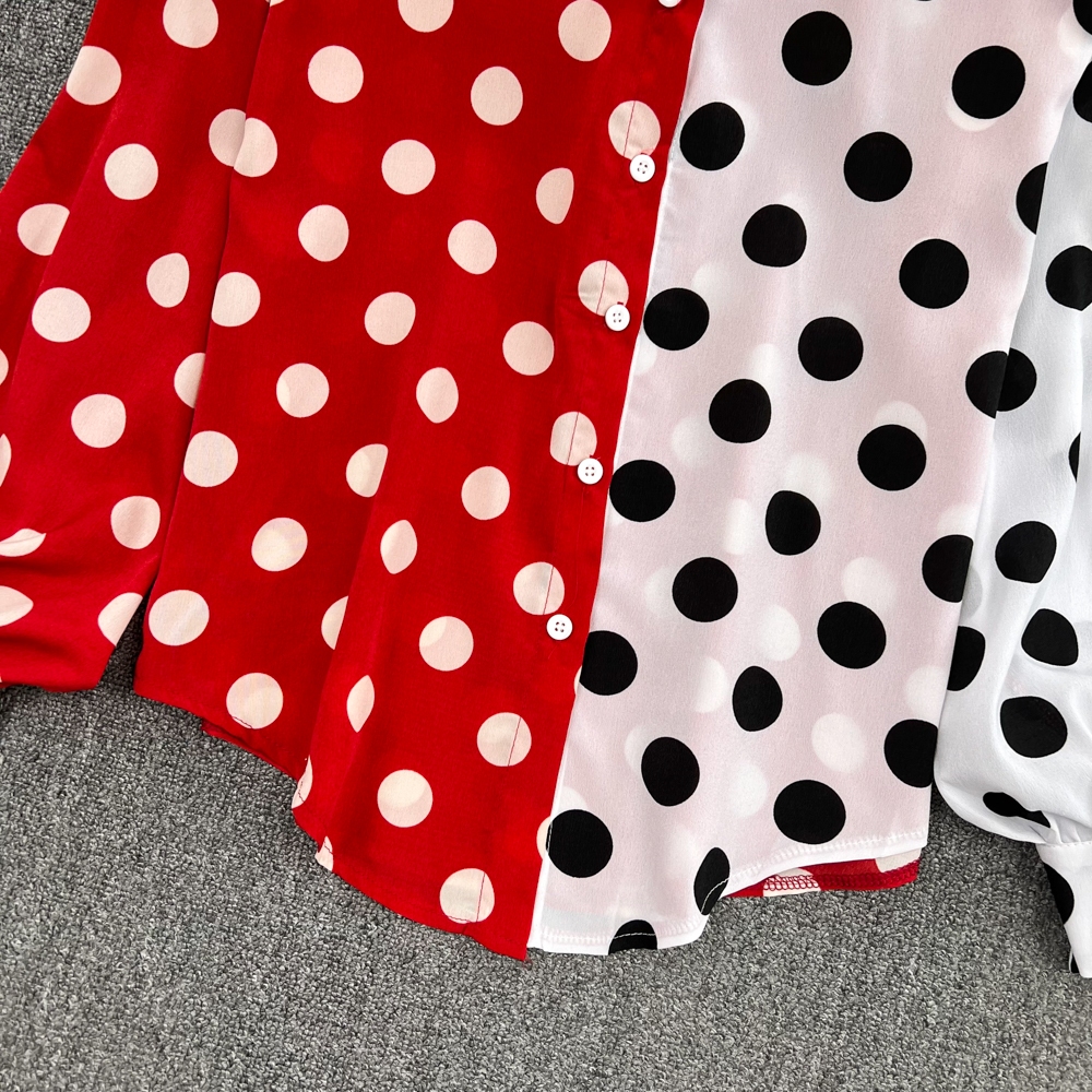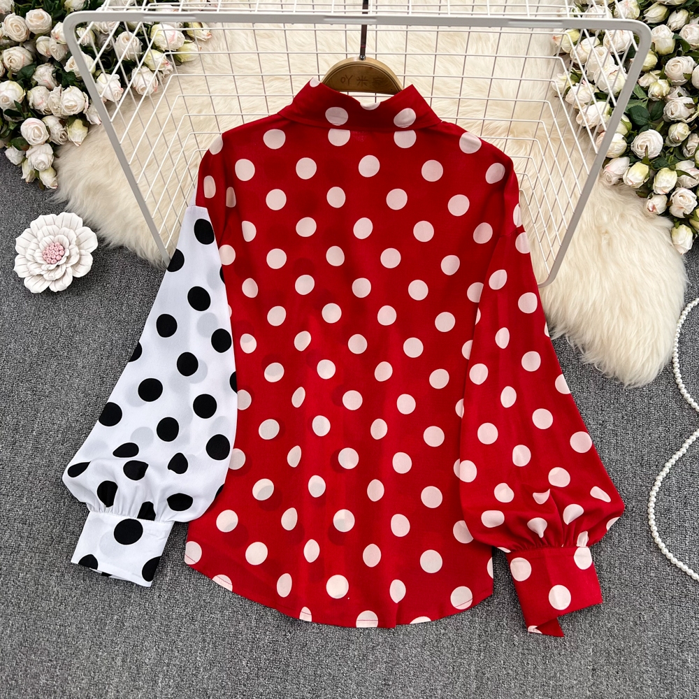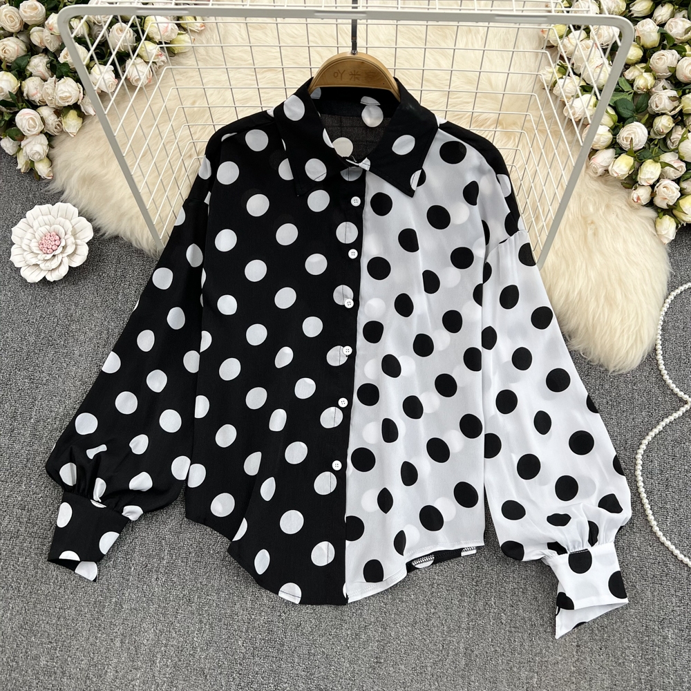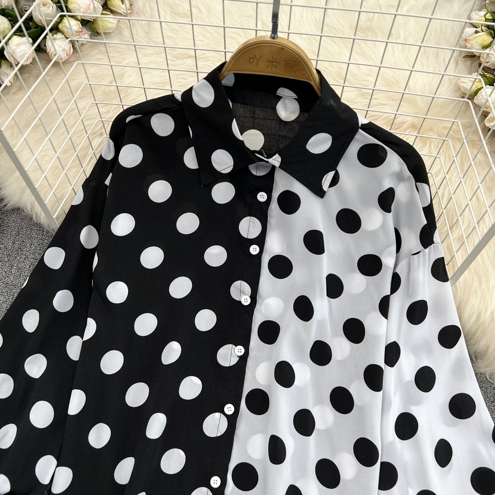 เสื้อเชิ้ตแขนยาว ผ้าชีฟอง ลายจุด ทรงหลวม สไตล์เกาหลี สําหรับผู้หญิง พร้อมส่ง