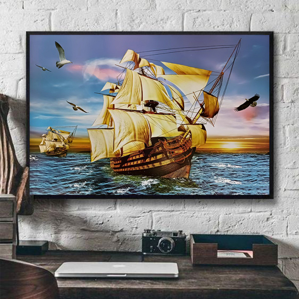 โปสเตอร์ ภาพมงคล รูปมงคล รูป วิว เรือสำเภา ขนาด 30 x 20.5 นิ้ว (76 x 52 ซม.โดยประมาณ) เรือสำเภา เป็นสัญลักษณ์แห่งความมั่งคั่งและการเดินทางโดยเฉพาะเกี่ยวกับการค้าขาย เพราะสมัยก่อนเรือสำเภาจะใช้เพื่อเดินทางไปค้าขาย เรือสำเภาที่แล่นกลับมาจะขนเงินและสินค้ามาเ