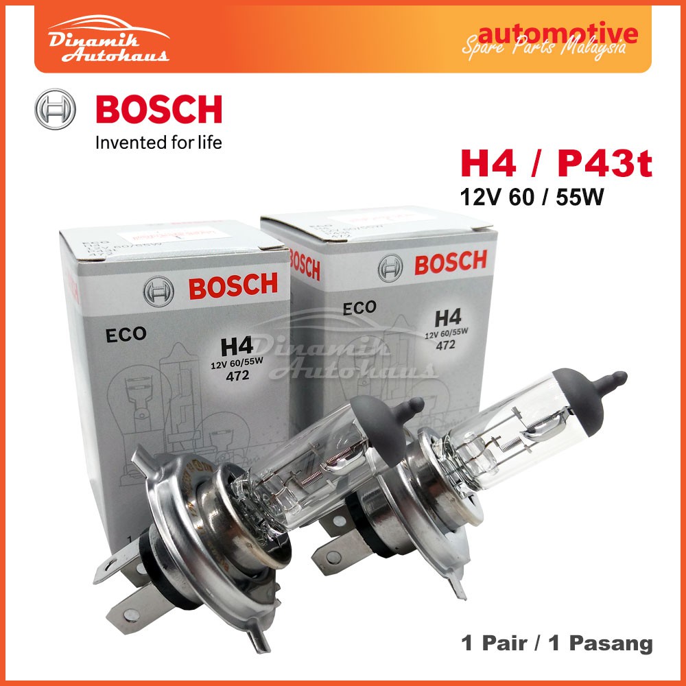Toyota Vios NCP40 / NCO42 / NCP93 / NCP150 E & J Spec Year 2003 ถึง 2018 หลอดไฟหน้ารถฮาโลเจน Bosch H4 / P43t 12V 60 / 55W (1 คู่)
