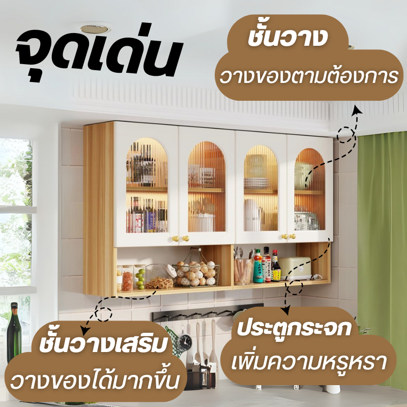ตู้เก็บของติดผนัง ตู้เก็บของในครัว ขั้นวางของติดผนัง ตู้แขวนห้องครัวติดผนัง Kitchen cabinet พร้อมส่ง