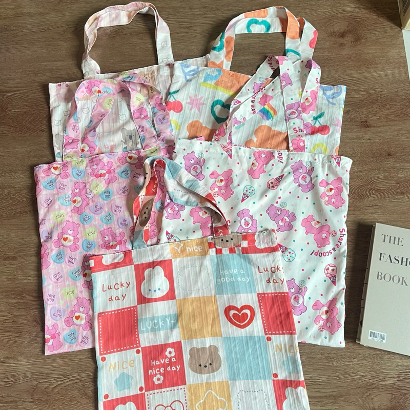 สีใหม่??✨กระเป๋าผ้าผู้หญิง ถุงผ้าสะพายข้างผู้หญิง กระเป๋าใส่ไปเรียนทำงานแฟชั่น ลายดอกไม้ ลายจุดสีน่ารักพาสเทลคิ้วๆ?