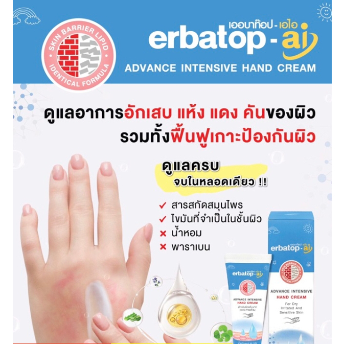 ERBATOP AI HAND CREAM 50 g ผลิตภัณฑ์ช่วยฟื้นฟูบำรุงมือ สำหรับผิวแห้งมากและระคายเคือง
