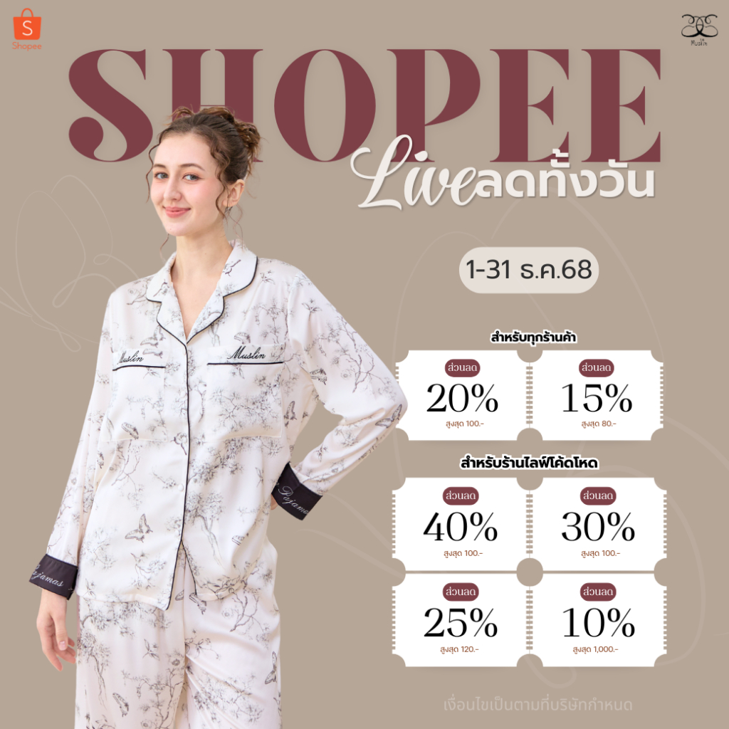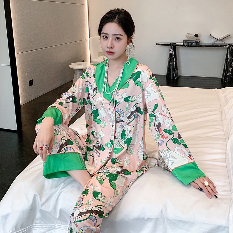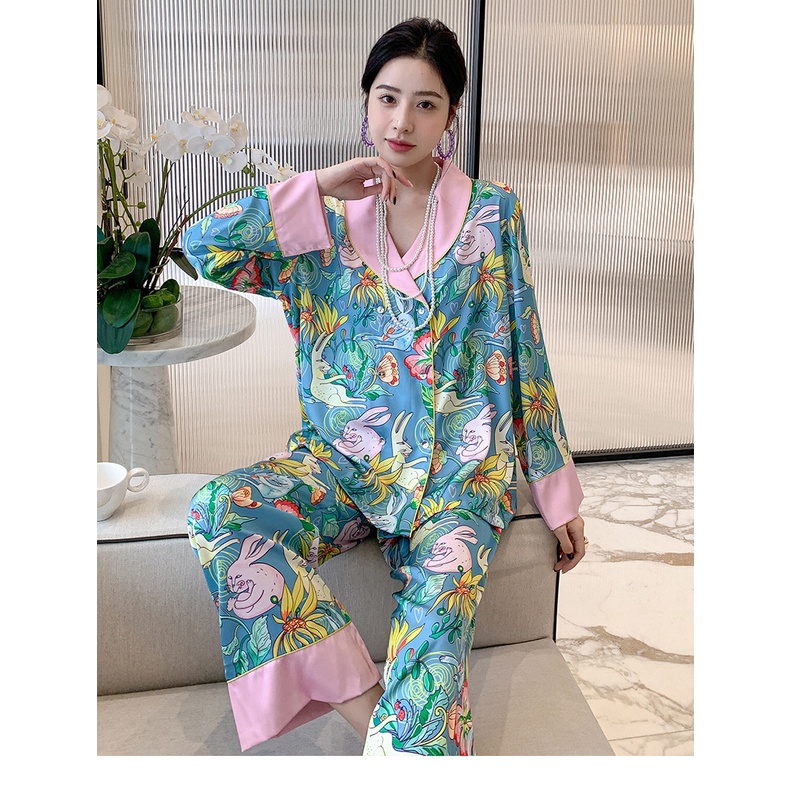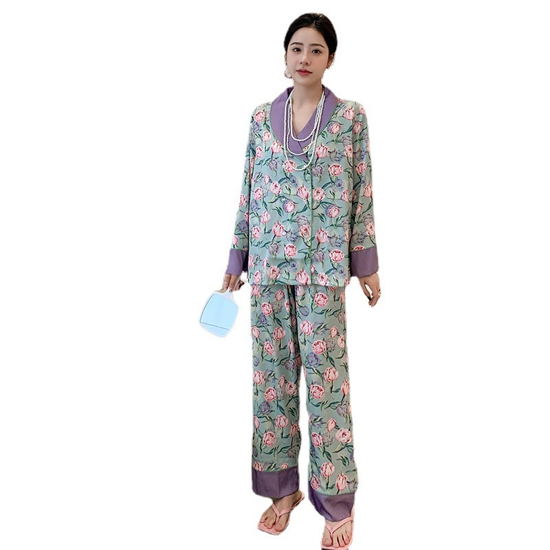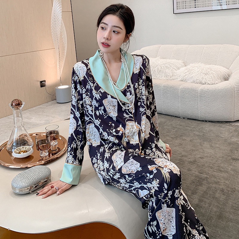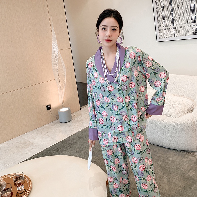 ชุดนอน Muslin Pajamas Silk Satin รุ่น Garden of Monet (N5168 T5168) | ชุดนอนชุดเที่ยว