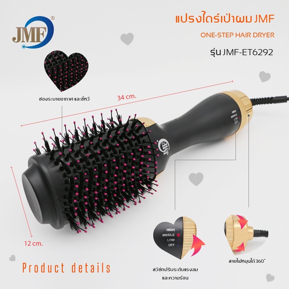 รายละเอียดสินค้า JMF หวีไดร์เป่าผม JMF-ET6292 (4in1)