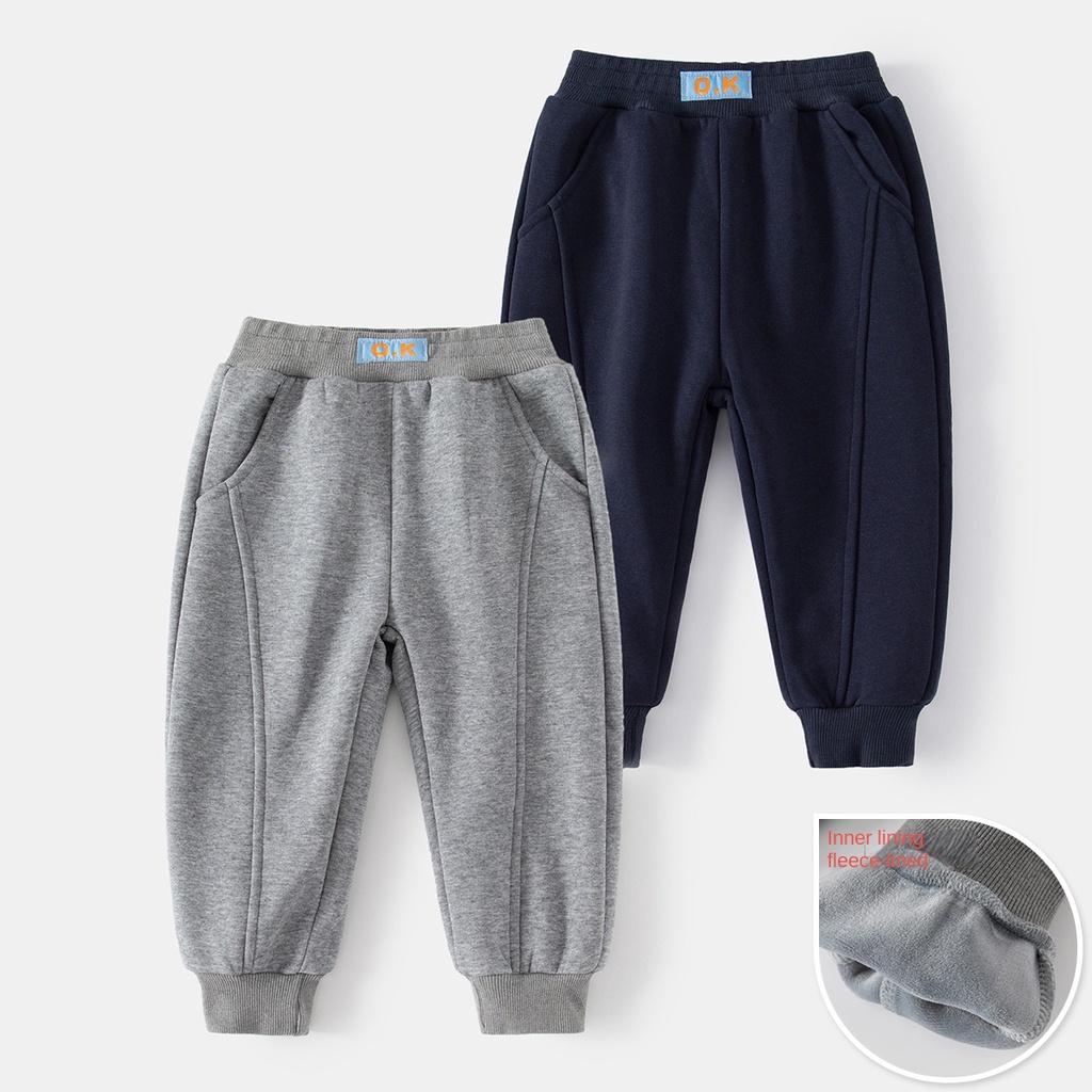 เสื้อผ้าเด็กกางเกงวอร์มลำลองกางเกงขายาวเอวพอเหมาะอินเทรนด์กางเกงขายาวขนแกะอบอุ่น Fried Street หลวมเด็กผู้ชายกางเกงกีฬา
