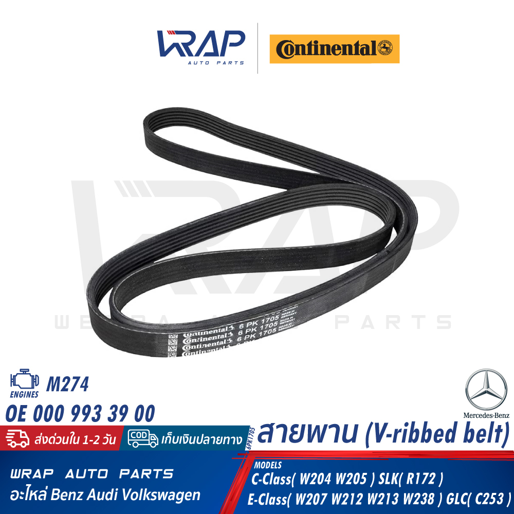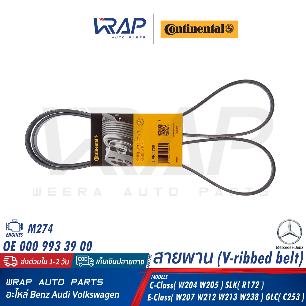 ⭐ BENZ ⭐ สายพาน Continental ( CONTITECH ) | เบนซ์ เครื่อง M274 รุ่น W204 W205 W207 W212 W213 W238 R172 C253 | 6PK1705