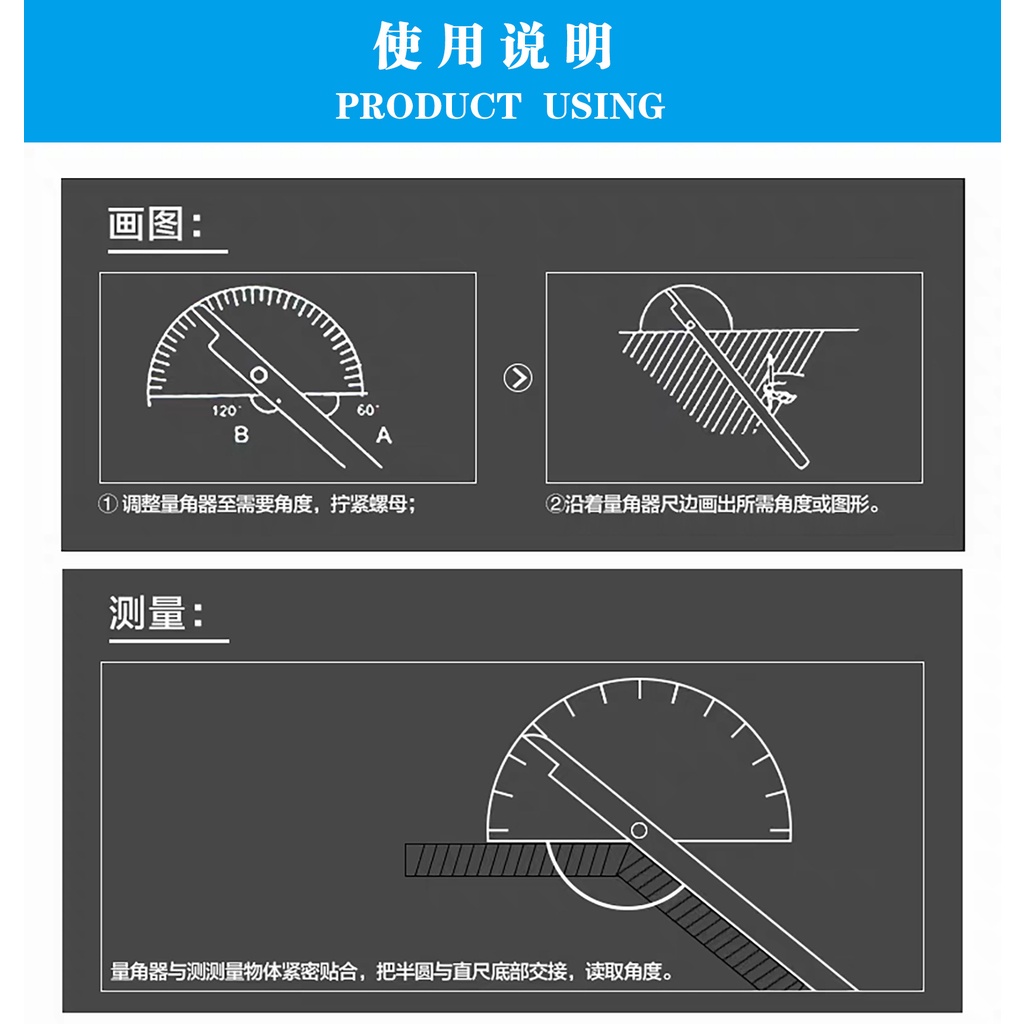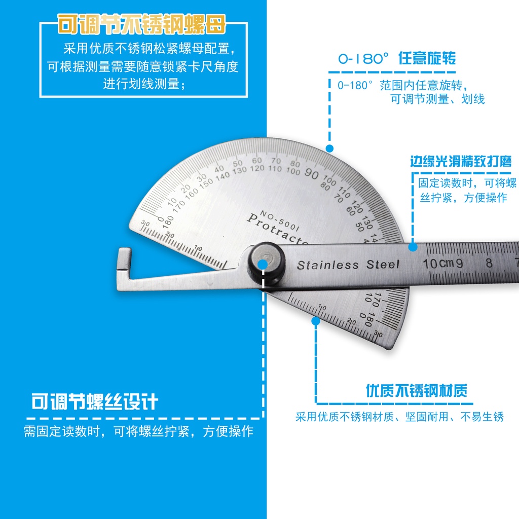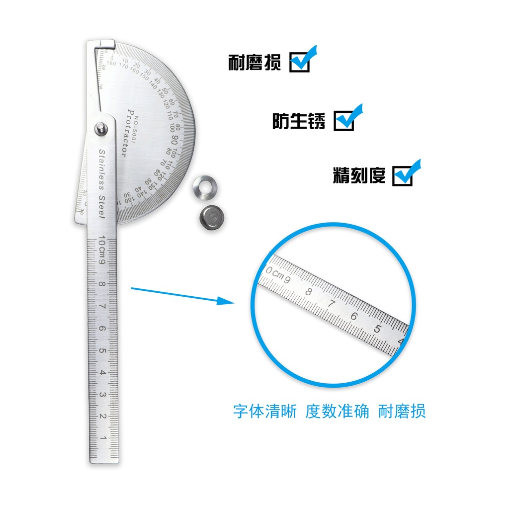 ไม้บรรทัดมุม 180 องศา 1 ชิ้น ° ไม้โปรแทรกเตอร์ ไม้บรรทัดมุม สเตนเลส 100 มม. 0-180 ° ครึ่งวงกลม