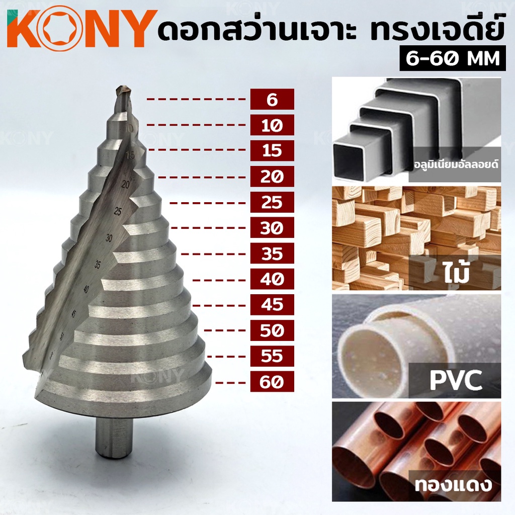 KONY ดอกสว่านเจาะ ทรงเจดีย์ โฮลซอเจาะเหล็ก 6-60 มม. เกรด HSS