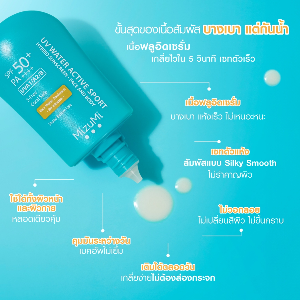 [สูตรอัพเกรด ไม่แสบตา เนื้อบางเบา] MizuMi UV Water Active Sport 40g กันแดดรุ่นสปอร์ต กันน้ำ คุมมัน กันเหงื่อ