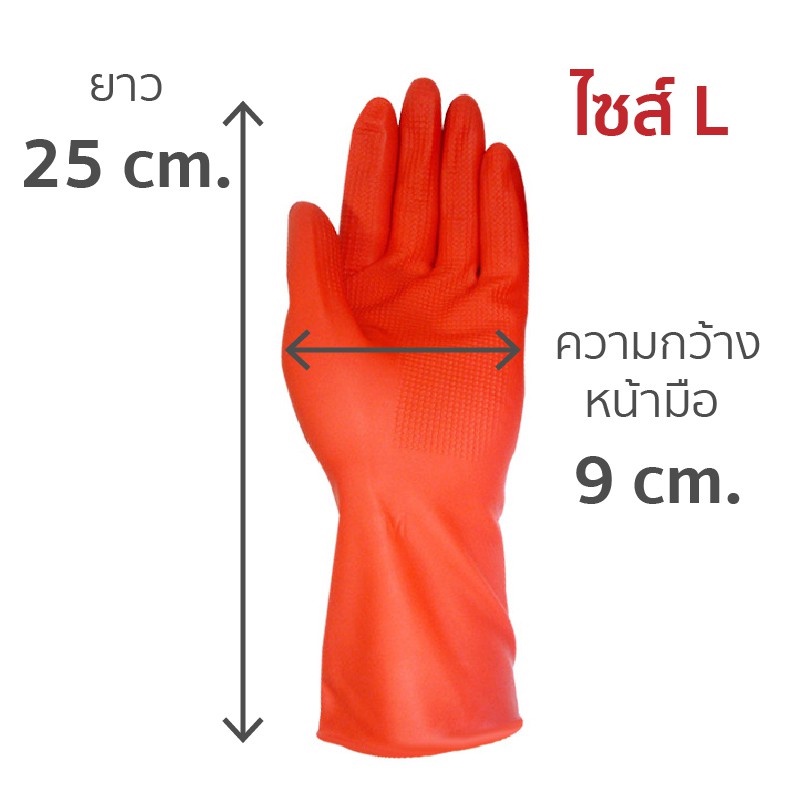 1.ไซส์ L สีแดง ข้อสั้น ความกว้างมือ 9 cm. ความยาว 25 cm.