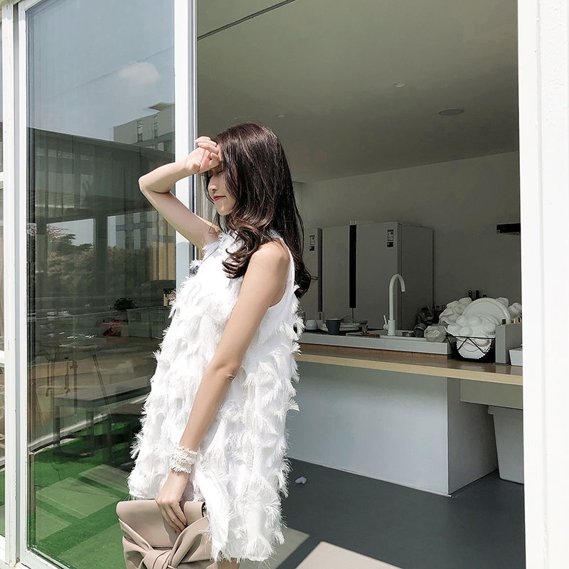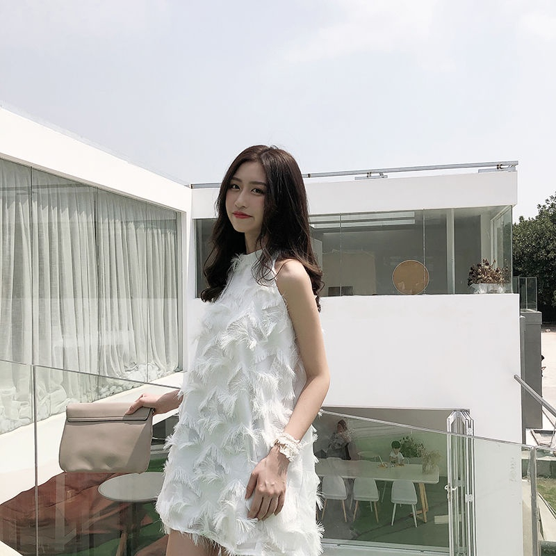 ?พร้อมส่ง? ซุปเปอร์แฟรี่เดรส สาวฝรั่งเศส แฟชั่น กระโปรงทรงเอแบบบาง ชุดคอแขวนคอไหล่