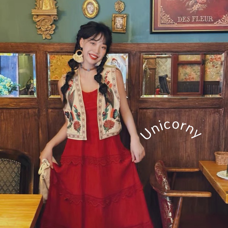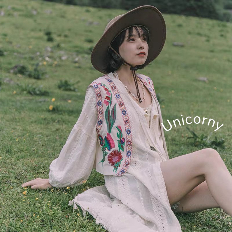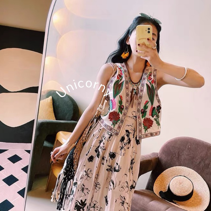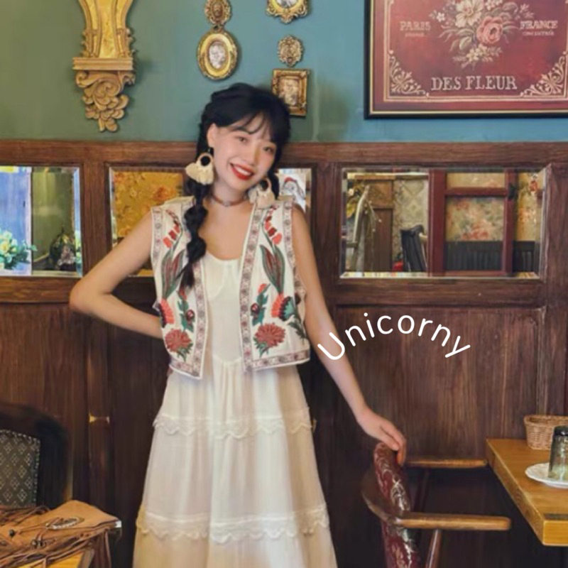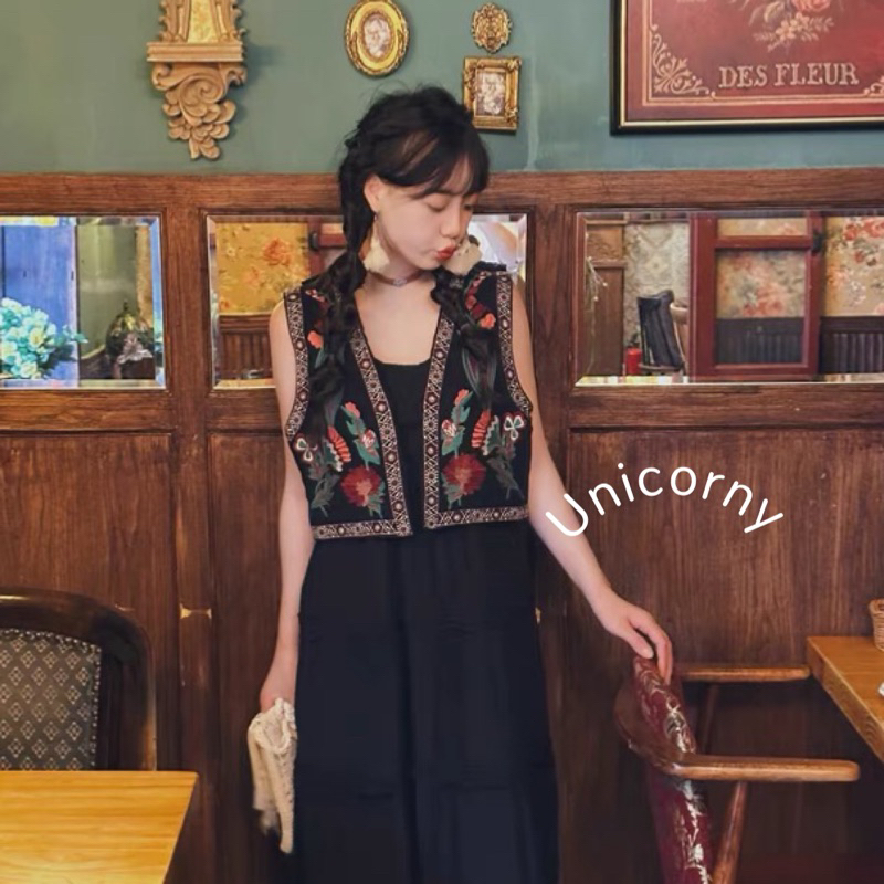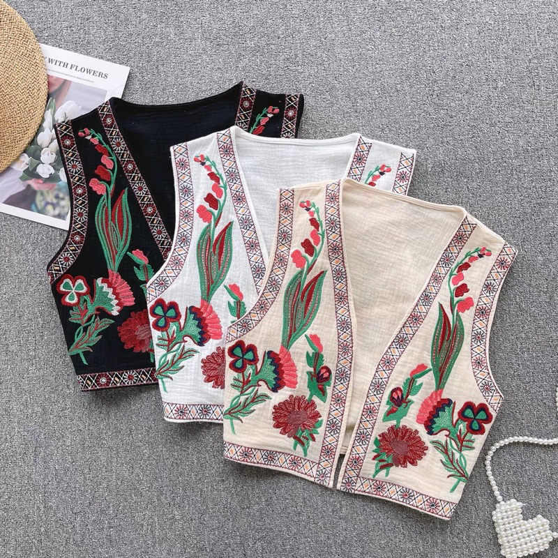 ( เสื้อกั๊กอินเดีย ) มี 3 สีขาว ดำ ครีม ปักลายดอกไม้สวยมาก เสื้อสไตล์มาตาลดาใส่ Bohemian unicorny