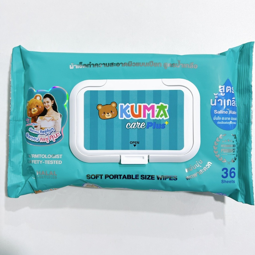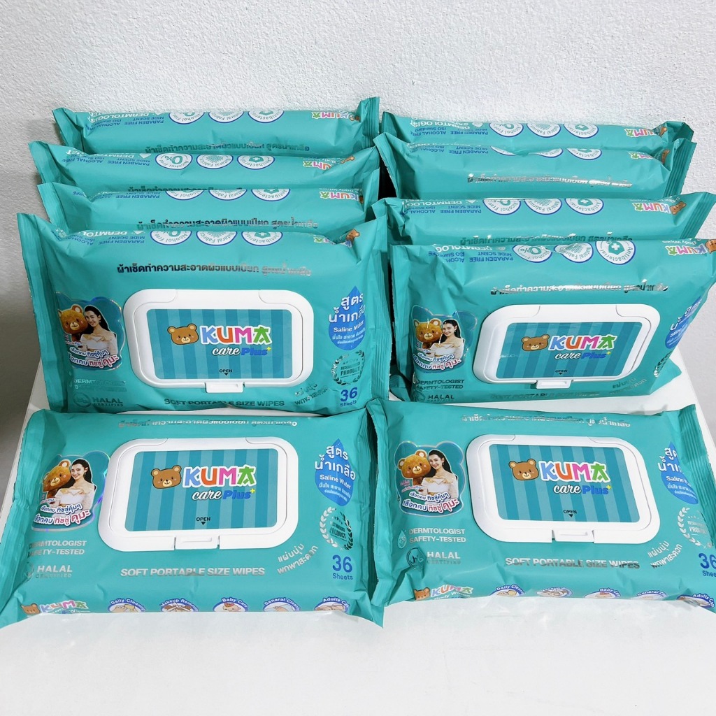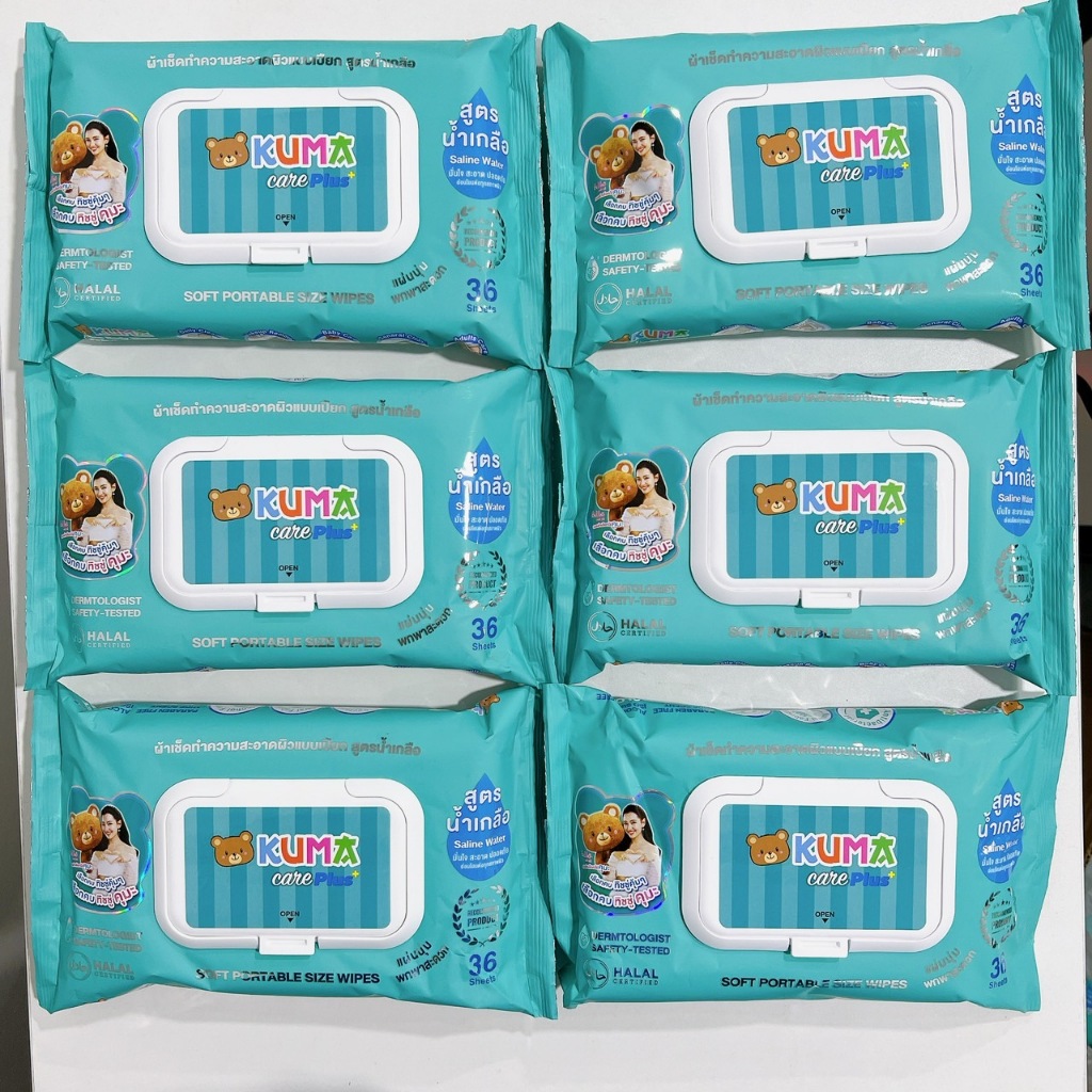 [เซท 6 ห่อ] KUMA Care Plus คุมะ แคร์พลัส กระดาษทิชชู่เปียกสูตรน้ำเกลือ บรรจุ 36 แผ่น