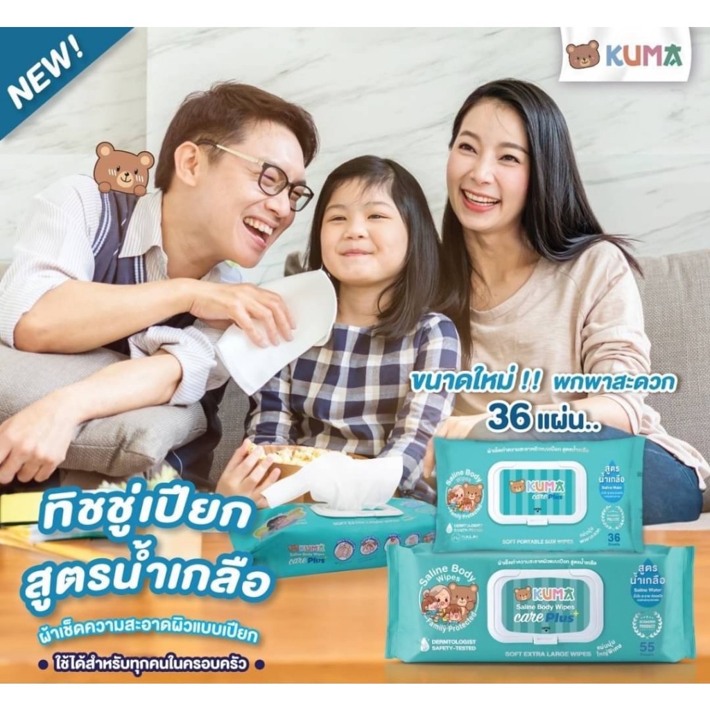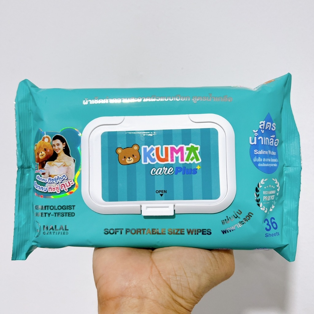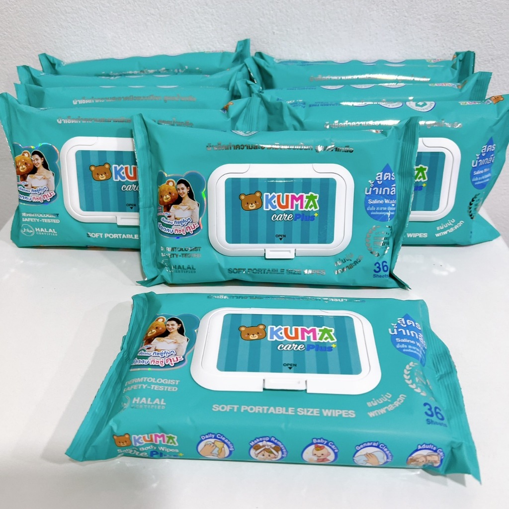 [เซท 6 ห่อ] KUMA Care Plus คุมะ แคร์พลัส กระดาษทิชชู่เปียกสูตรน้ำเกลือ บรรจุ 36 แผ่น