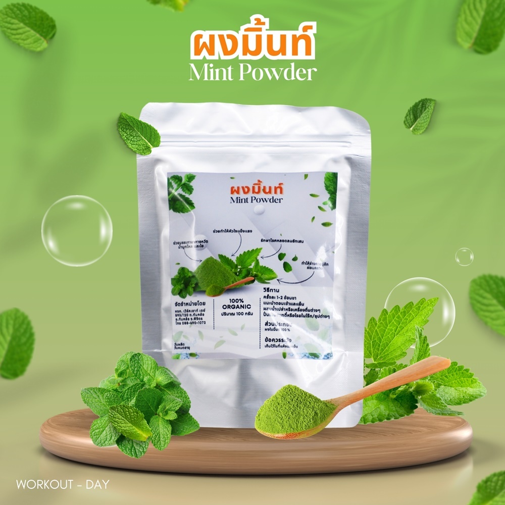 ผงใบมินท์ ผงมินท์ ออแกนิค ขนาด 100 กรัม