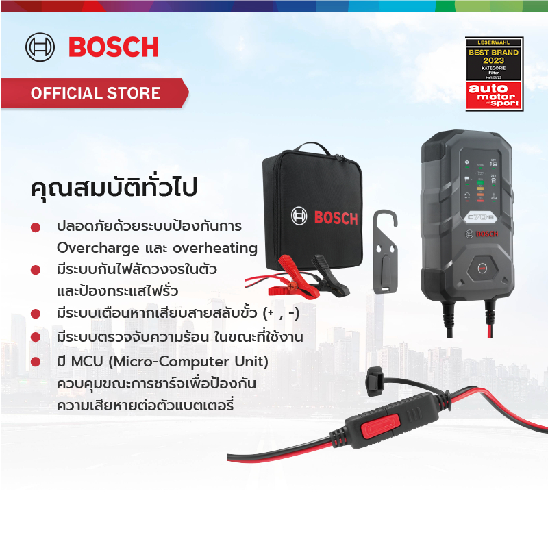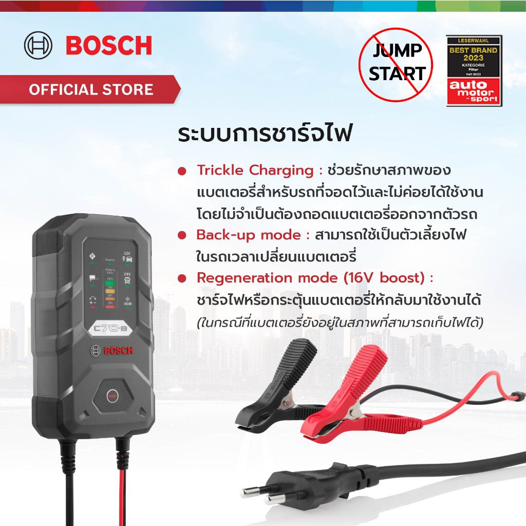 Bosch เครื่องชาร์จแบตเตอรี่ รุ่น C70-B (ไม่สามารถจั๊มสตาร์ทได้) รับประกัน 2 ปี