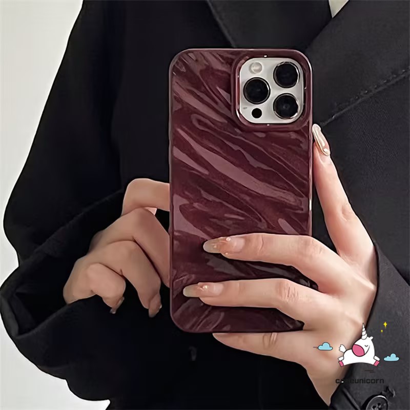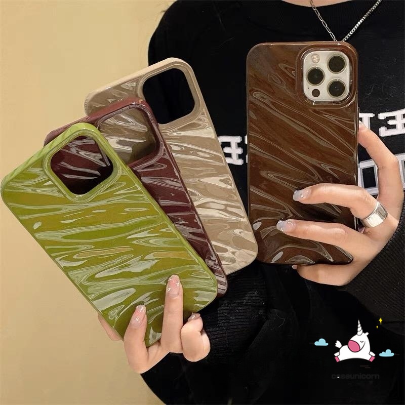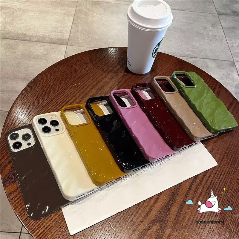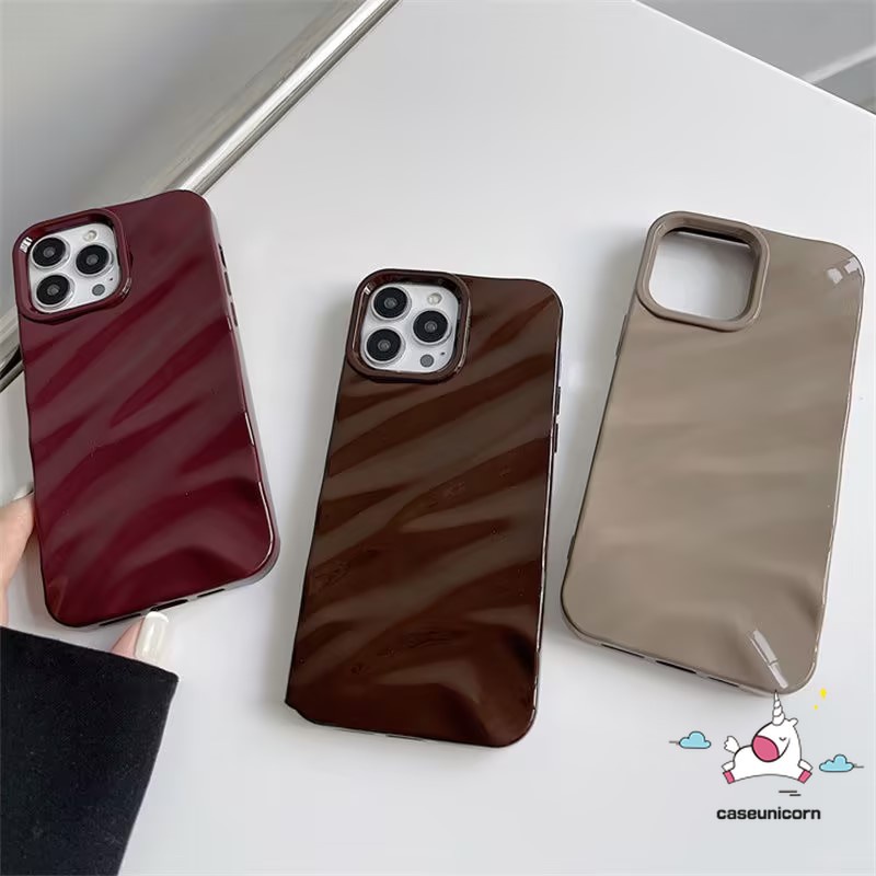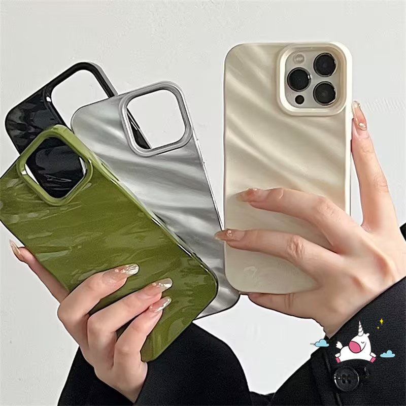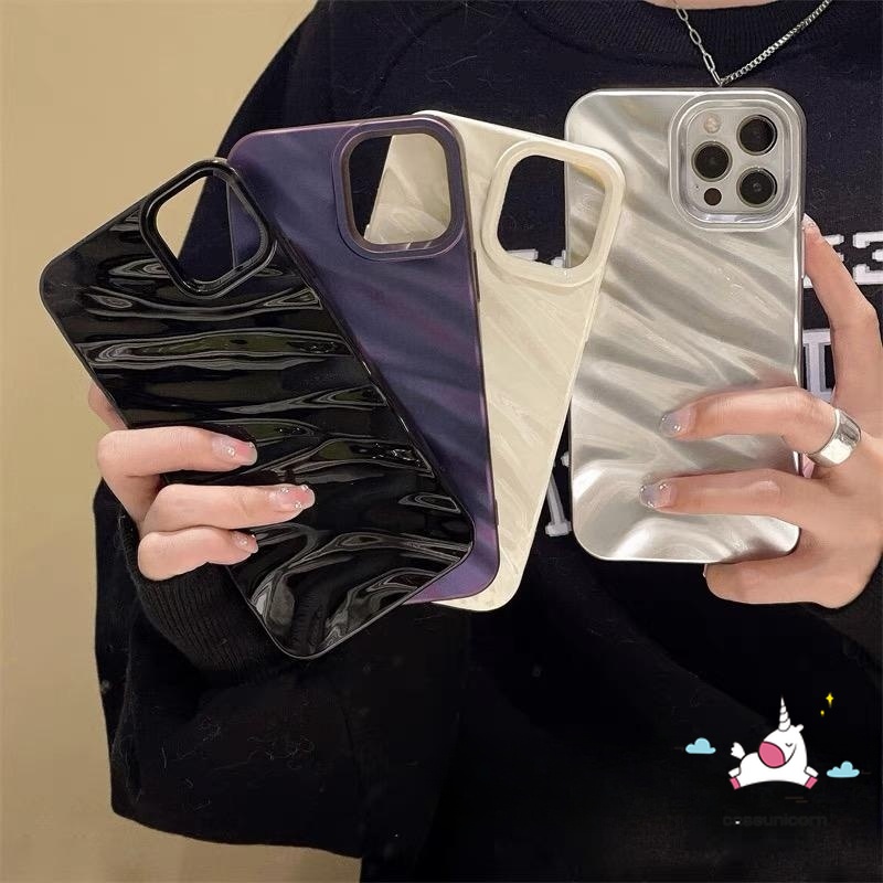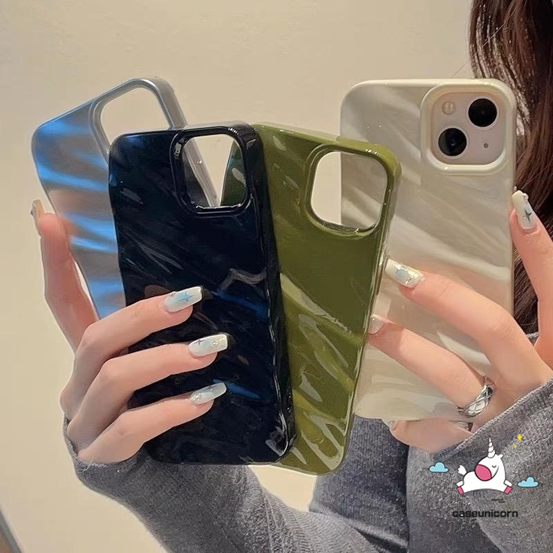 หรูหรา Dreamy Pleats สีทึบ Glossy สําหรับ IPhone 7Plus 11 15 14 13 17 Pro Max XR X i17 Air 8Plus กันกระแทก 3D Wavy Grain ริ้วรอยฝาครอบโทรศัพท์นุ่ม