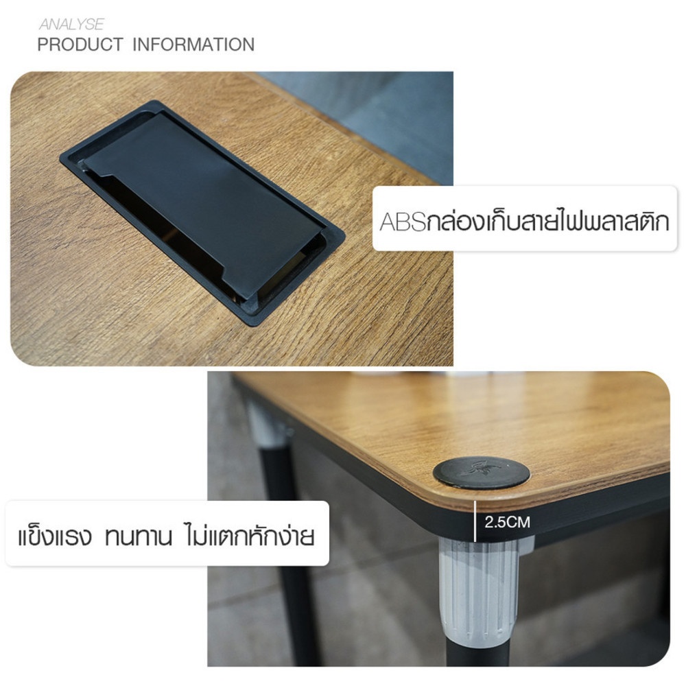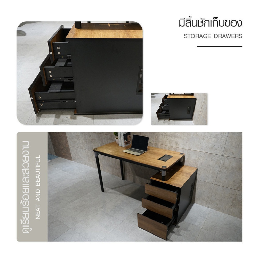 SMITH โต๊ะทำงาน รุ่น FEYAN ขนาด 60x120x75 ซม. สีไม้ธรรมชาติ ขนาดโต๊ะ : 60x120x75 ซม.ขนาดช่องเก็บเอกสาร : 40x60x58 ซม.วัสดุ: MFC+Aluminum alloy+Carbon steelสามารถรับน้ำหนักได้สูงสุด 200 กก. วิธีการดูแล/รักษาใช้ผ้านุ่มหรือไม้ขนไก่ปัดฝุ่นเบา ๆกรณีมีคราบ