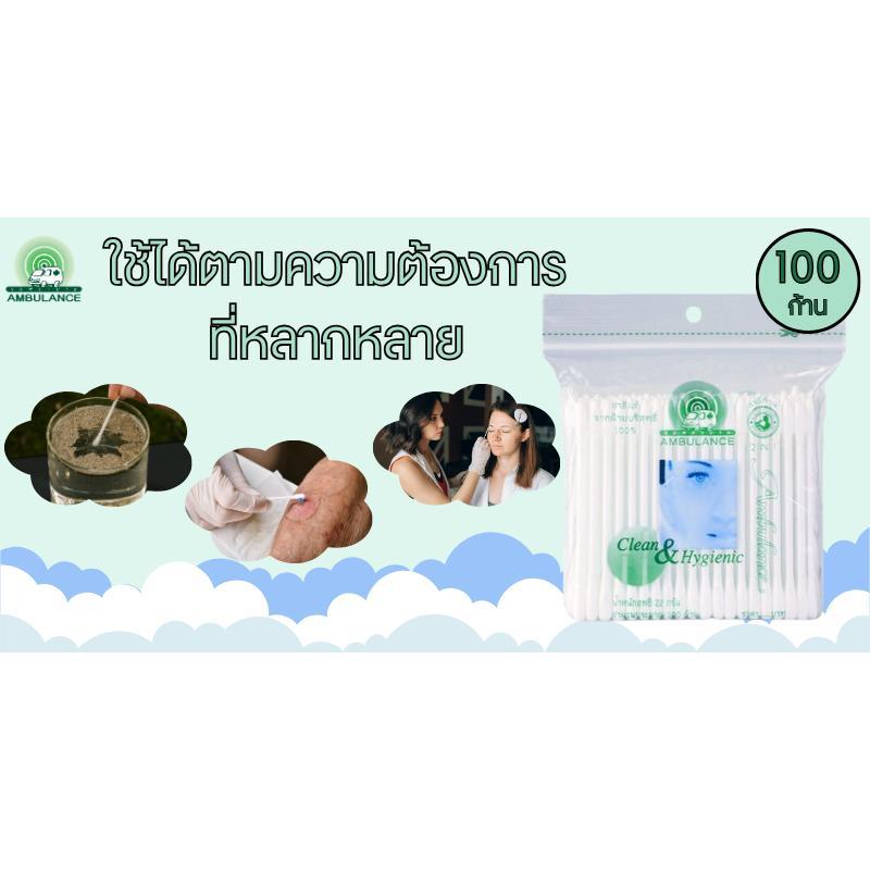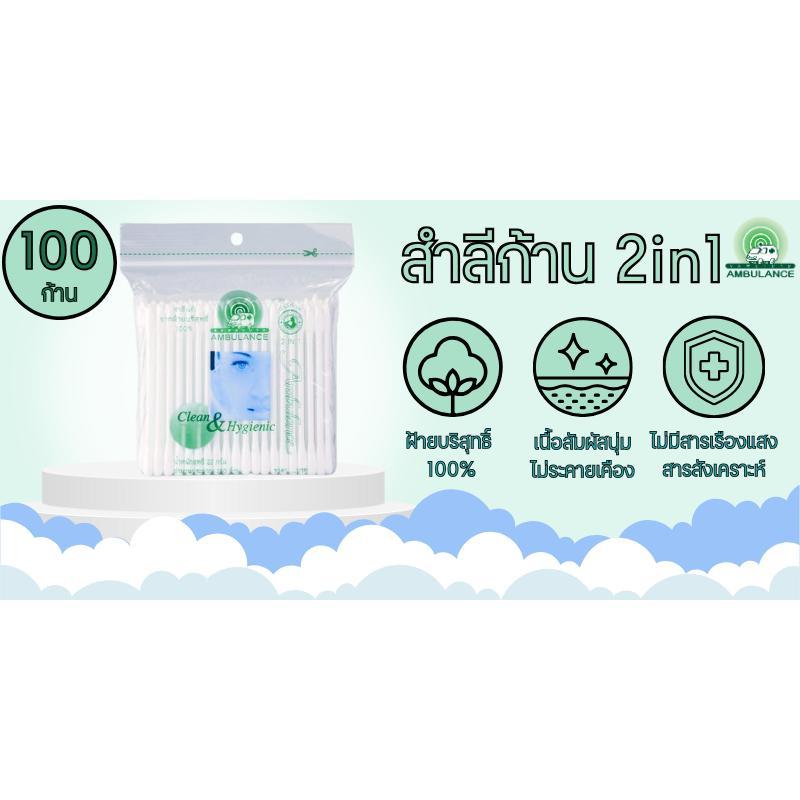 ดูแลความสะอาดอย่างมั่นใจด้วย สำลีก้าน2in1รถพยาบาลแพ็ค 100 ก้าน ผลิตจากฝ้ายบริสุทธิ์ 100% ปราศจากใยสังเคราะห์และสารเรืองแสง อ่อนโยนต่อผิวแม้บริเวณที่บอบบาง ใช้งานได้หลากหลาย ทั้งทำความสะอาดแผล เช็ดหู หรือแต่งหน้า ด้วยขนาดเหมาะมือและปลายสำลี 2 หัว ปลายแหลมแ