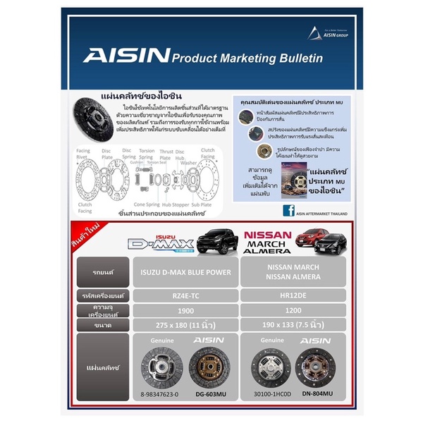 ชุดครัช AISIN Isuzu Dmax ปี03-12 เครื่อง 4JH1 4JJ1 4JK1 ขนาด10″ คอมมอลเรล ลูกปืนปลาย 6203