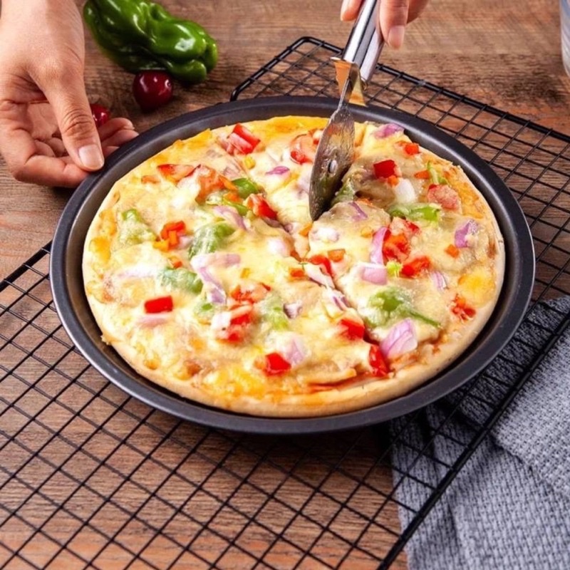 *พร้อมส่ง* ถาดพิซซ่า พิมพ์วงกลม มี2สี5ขนาด(6, 7, 8, 9, 10นิ้ว) รองอบพิซซ่า อบขนมแบบกลม พิซซ่า เค้ก