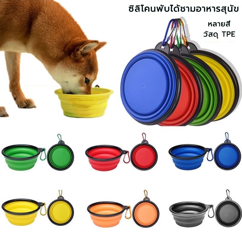 ซิลิโคนพับได้ชามอาหารสุนัข พกพาสะดวก พับได้ ใส่ได้ทั้งอาหารและน้ำ ชามสิริโคนใส่อาหารแบบพกพา