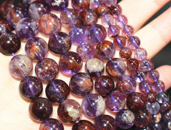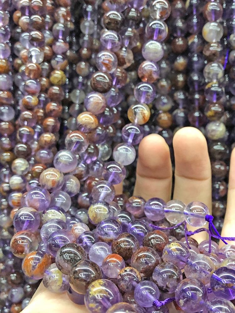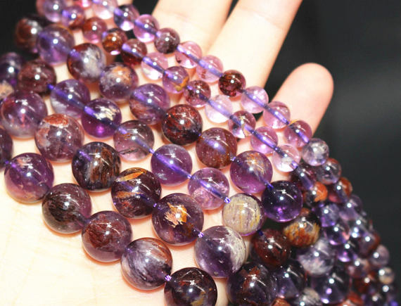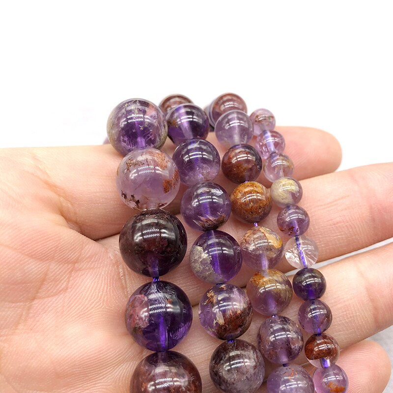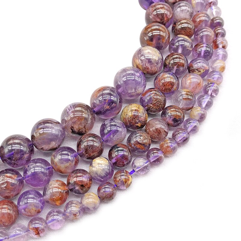 ธรรมชาติไทเทเนียม Rutilated Auralite 23 Phantom ลูกปัดคริสตัล 6 มม.8 มม.10 มม.ลูกปัดแบบหลวมสําหรับเครื่องประดับ 15.5*