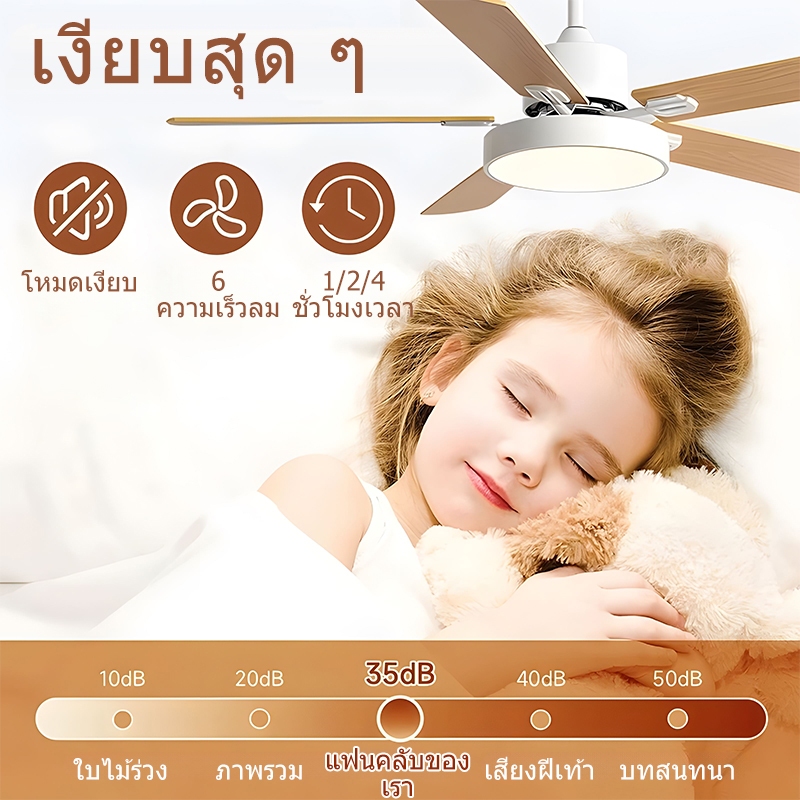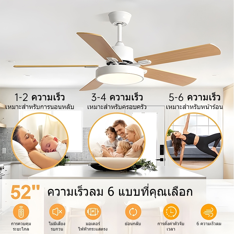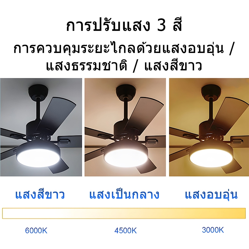 GOGEOUS พัดลมเพดาน 107/122/132cm ไฟ3สี 6ความเร็ว โคมไฟพัดลม มีรีโมทคอนโทรล เหมาะสำหรับห้องนั่งเล่น