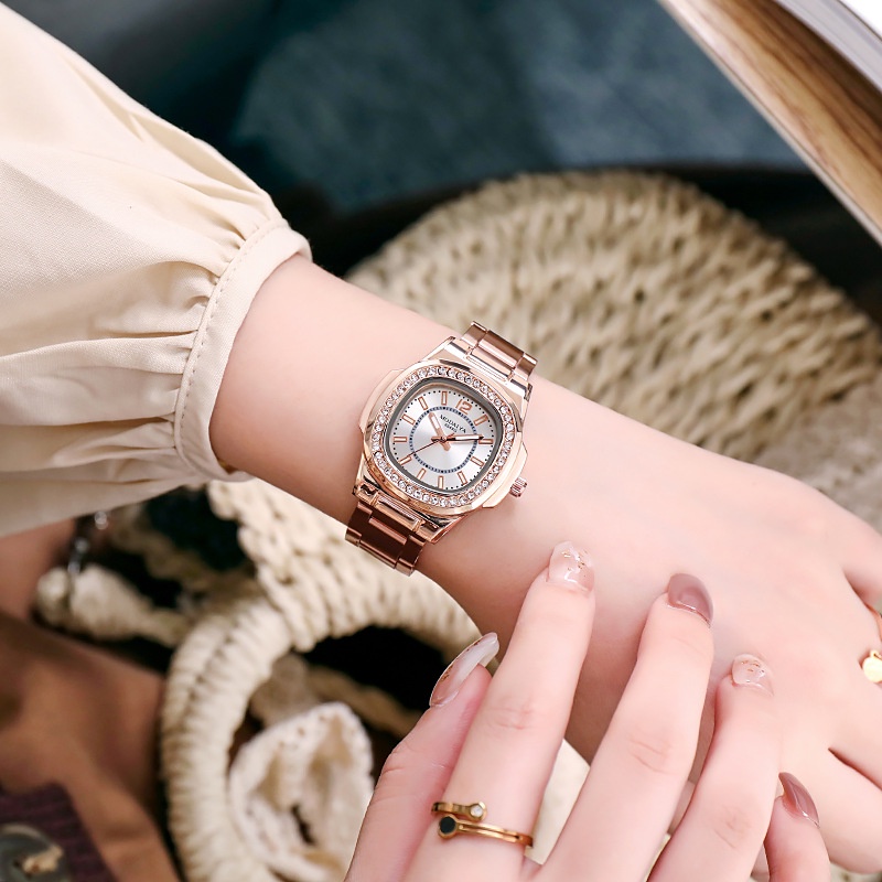 นาฬิกาข้อมือ สายเหล็ก ทรงสี่เหลี่ยม สไตล์โบราณ เรียบง่าย สําหรับผู้หญิง และนักเรียน