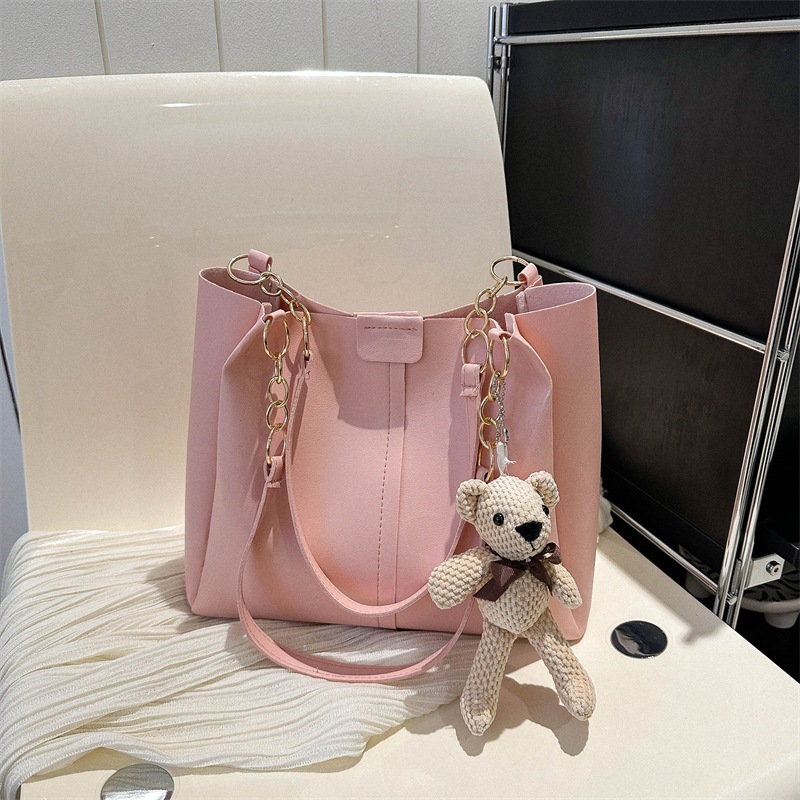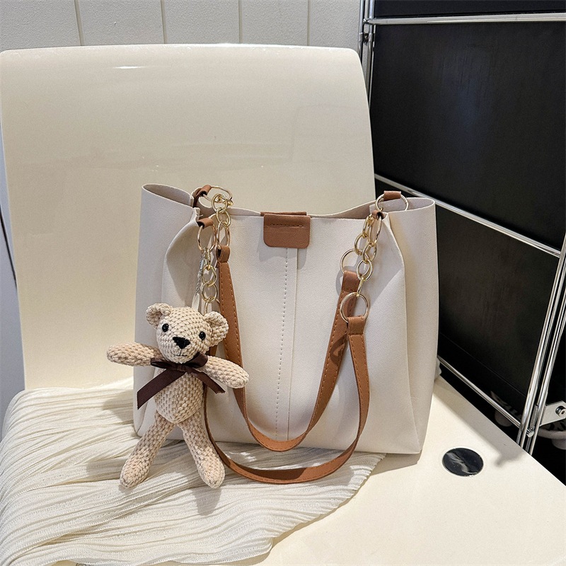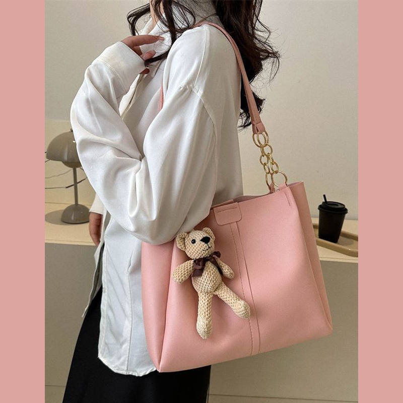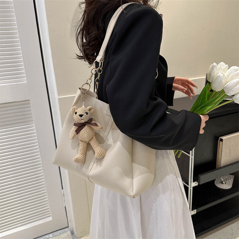 กระเป๋าสะพายไหล่ หนัง PU ความจุเยอะ เรียบง่าย แฟชั่น สำหรับผู้หญิง ไม่มีจี้