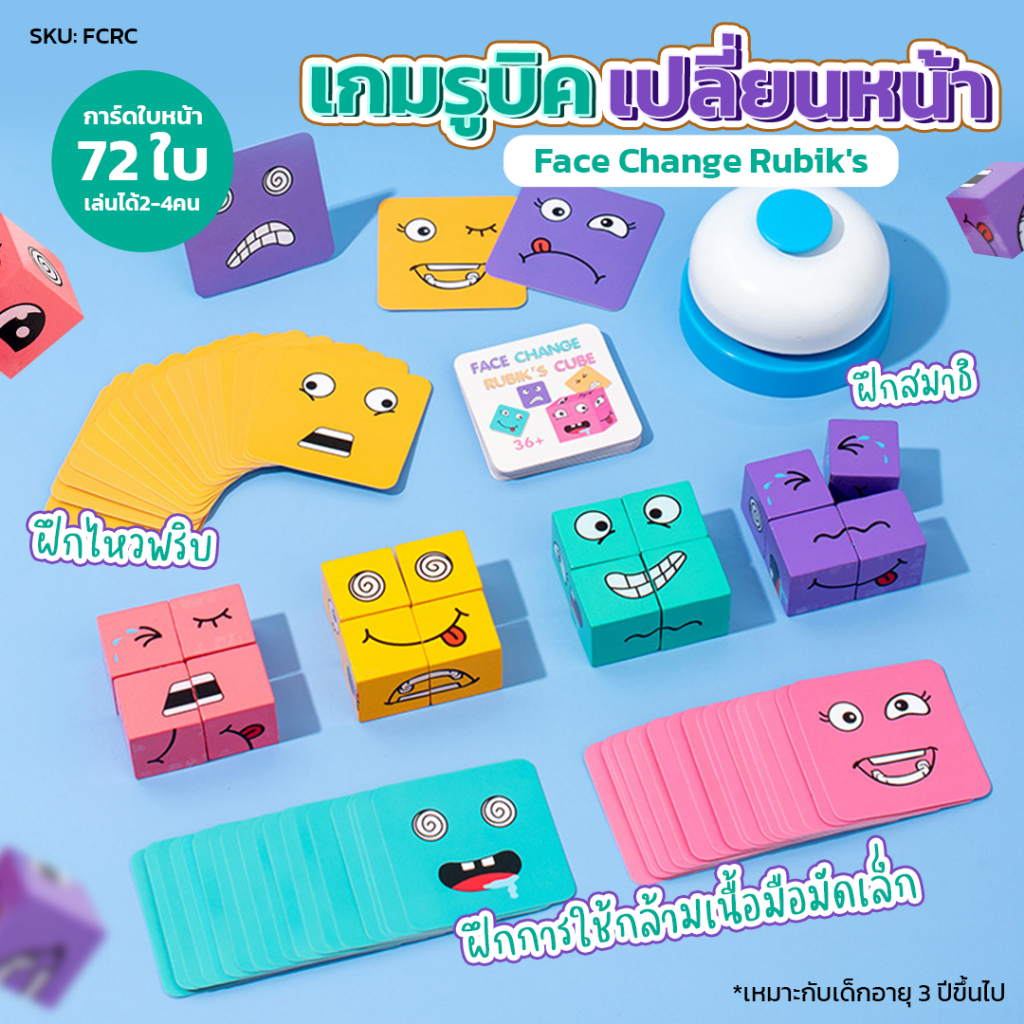 ลูกบาศก์ใบหน้าปริศนา?เรียงการ์ดใบหน้าและลูกบาศก์ไม้รูบิค ที่มีหลากหลายอารมณ์ ? แสดงสีหน้าไม่ซ้ำกันและมีสีสันที่สดใส เพื่อกระตุ้นความสนใจของเด็ก ???? กดกระดิ่งเพื่อทดสอบความเร็วของมือ เรียงลูกบาศก์ตามรูปแบบบนการ์ดใบหน้าอย่างรวดเร็