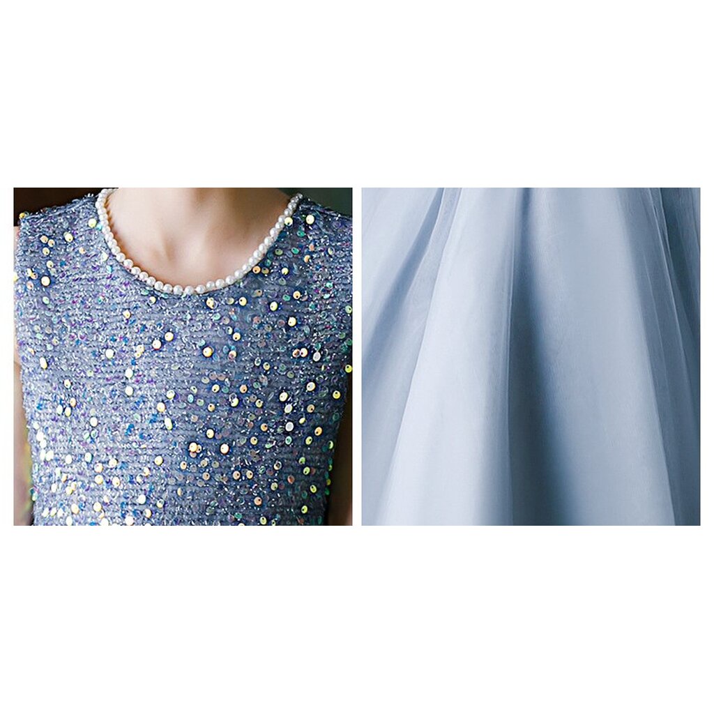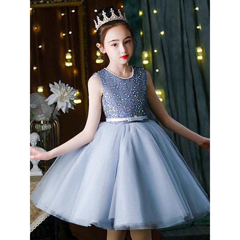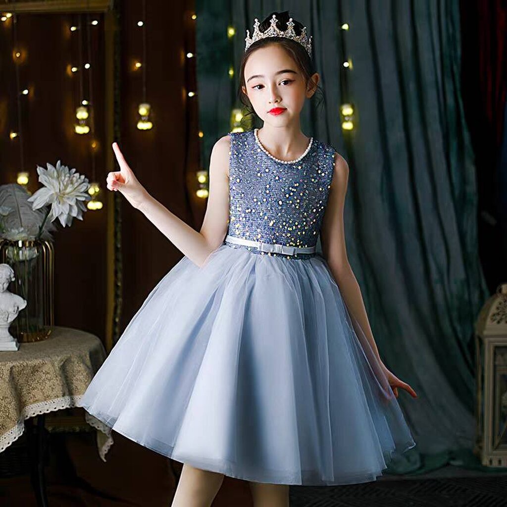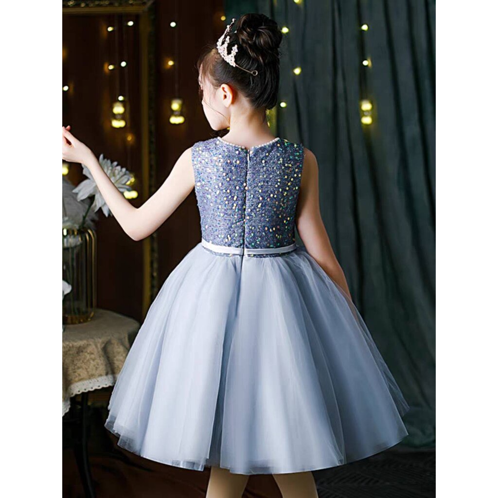 Gd3980- พร้อมส่งจากไทย ชุดออกงานเด็กหญิงสีเทาเงิน ชุดราตรีเด็กทรงสั้น ตกแต่งติดเลื่อมสุดสวย ผ้าสวยดูหรูหรา แขนกุด