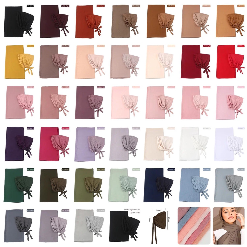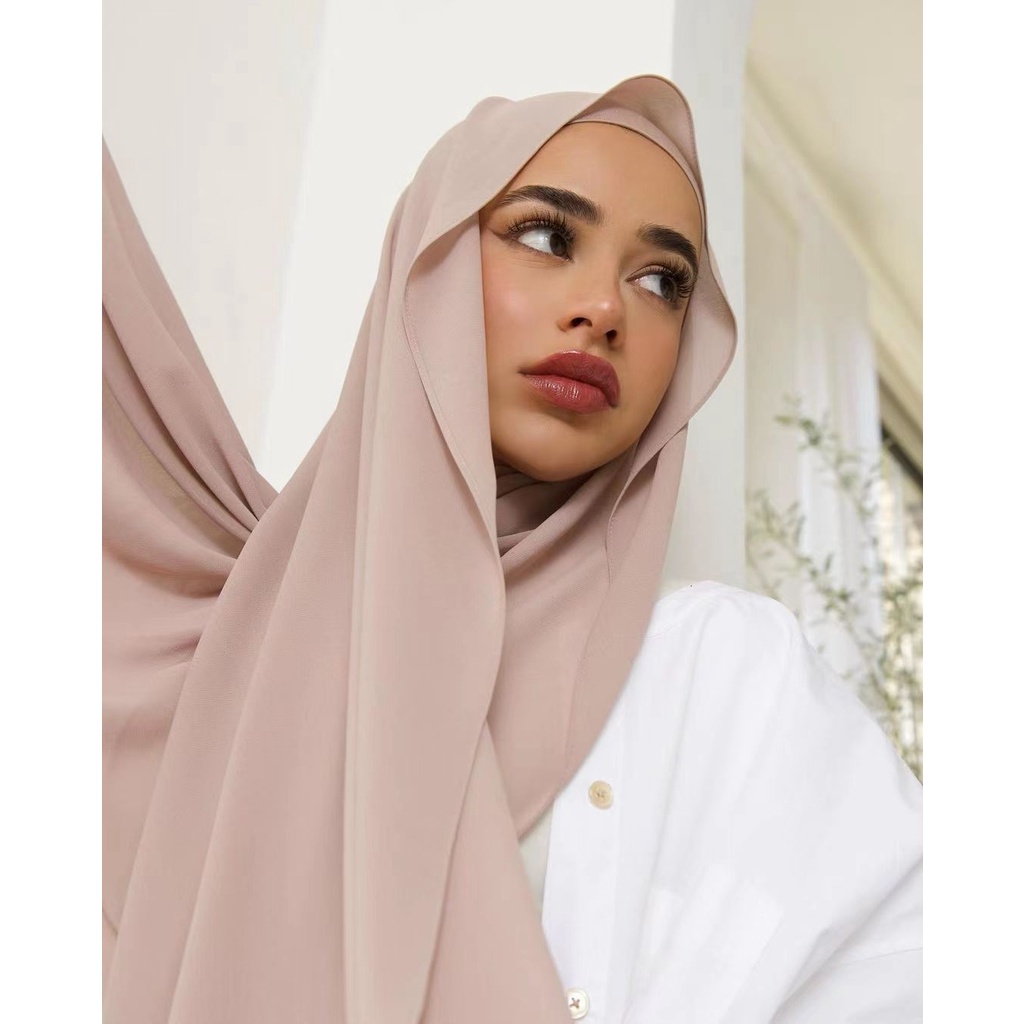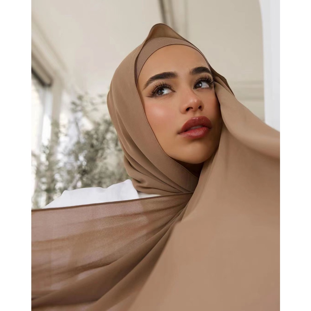 ผ้าคลุมฮิญาบ และผ้าโพกหัว ผ้าชีฟอง สไตล์มุสลิม รอมฎอน แฟชั่นมุสลิม สําหรับผู้หญิง จํานวน สองชิ้น