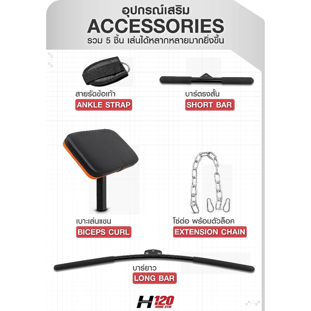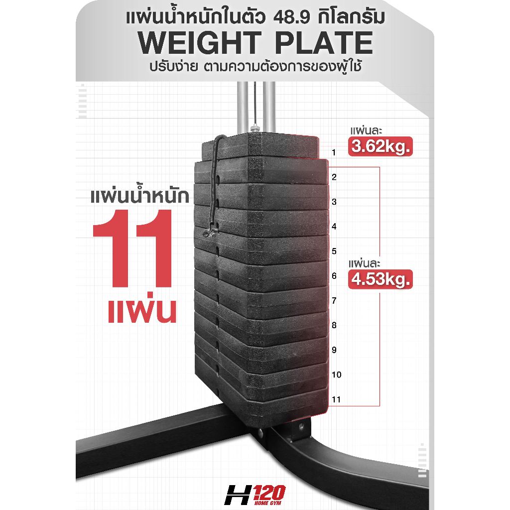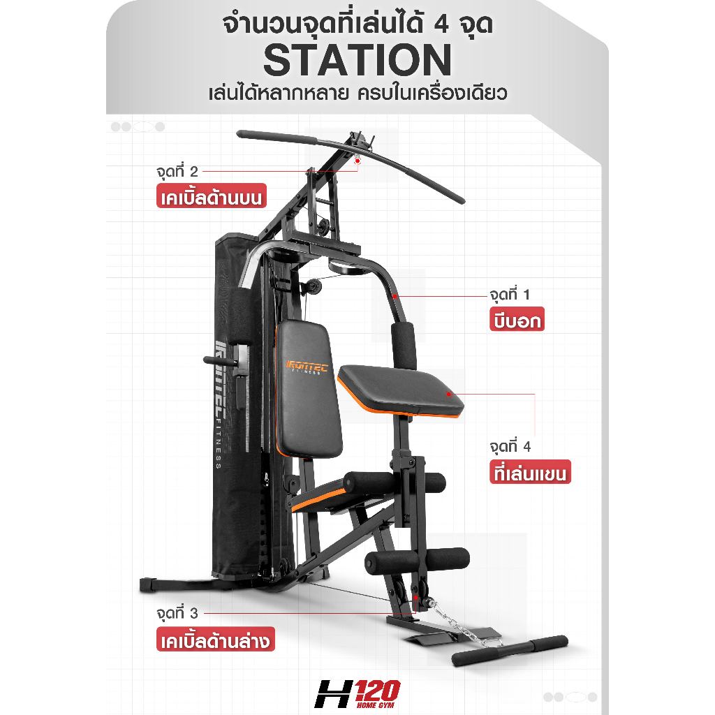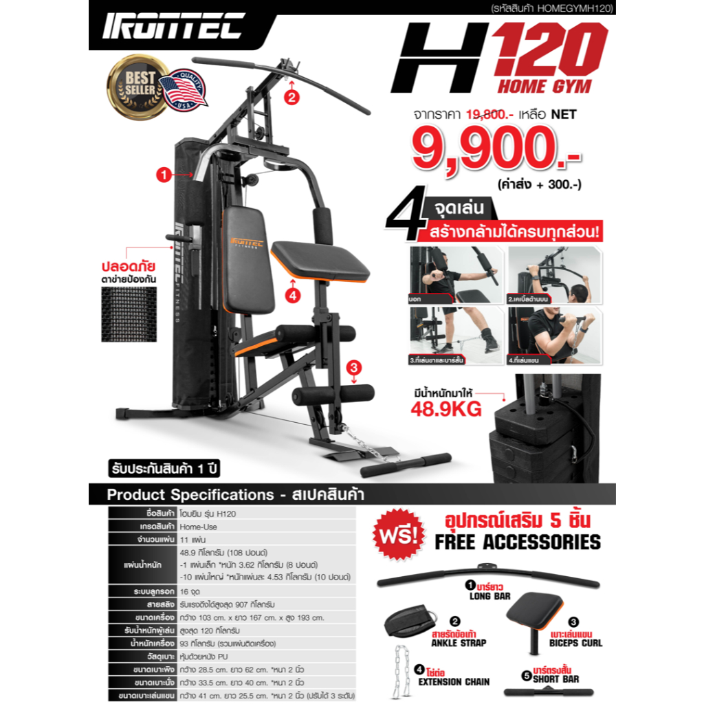 โฮมยยิม รุ่น H120 จาก IRONTEC™ เครื่องบริหารที่ทุกบ้านต้องมี แผ่นน้ำหนัก 60 กิโล ปรับได้ เหล็กหนาพิเศษ แข็งแรง ระบบเคเบิ้ล ลูกลอก 10 ตัวเล่นแล้วลื่น // **ทางบริษัทจัดส่งสินค้าผ่านบริการขนส่งเอกชน ลูกค้าสามารถติดตั้งสินค้าเองได้อย่างง่ายดายตามคู่มือ