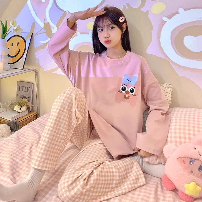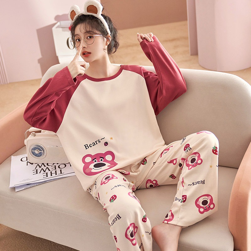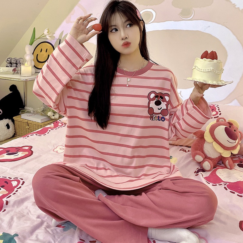 พร้อมที่จะส่งชุดนอนลายเส้นใหม่สุดฮิตมิกซ์การ์ตูนเสื้อเชิ้ตแขนยาว กางเกง